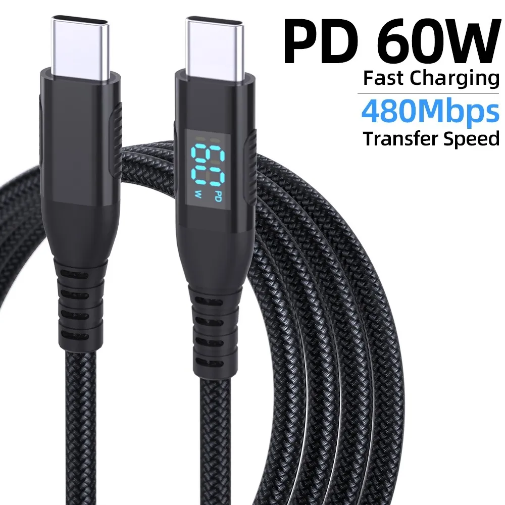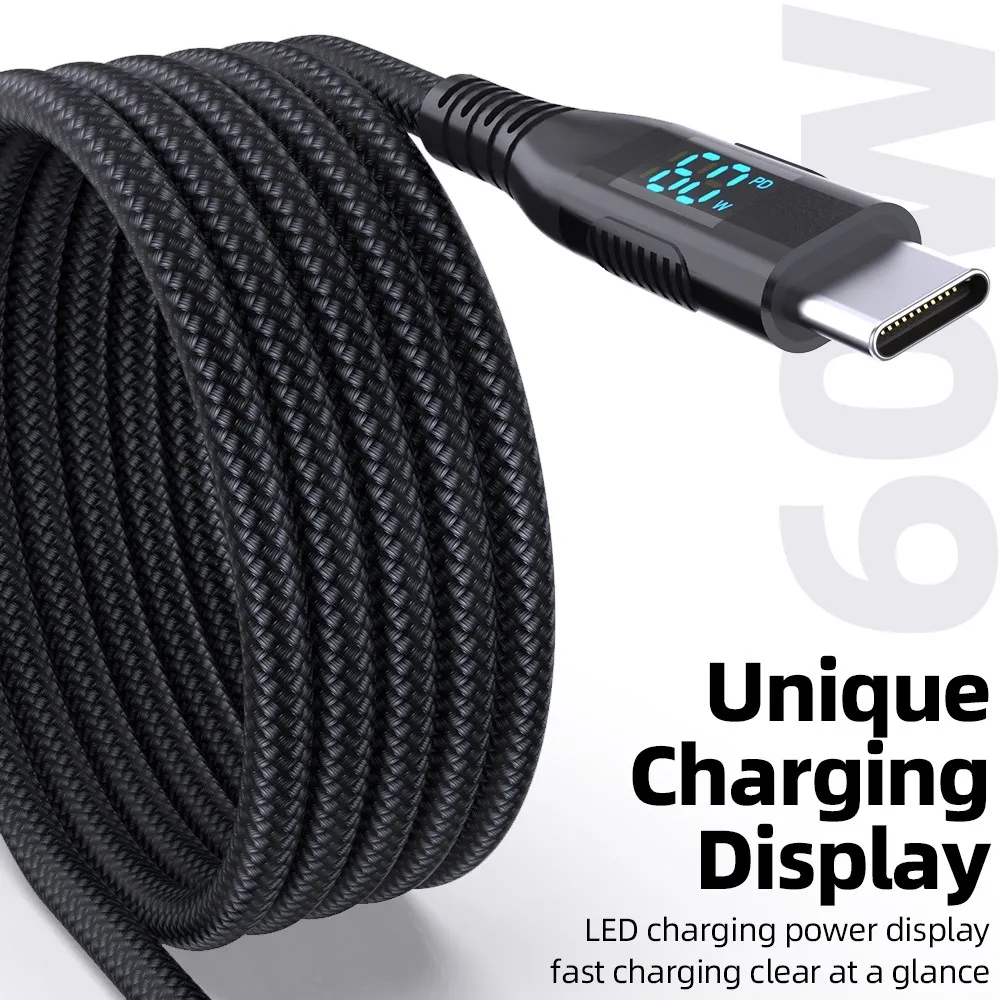 3m USB-C na USB-C kabel s displejem 60W rychlé nabíjení nylonový je spolehlivý kabel pro rychlé nabíjení i přenos dat u moderních zařízení. Podporuje výkon až 60 W (3A/20V), takže je ideální pro smartphony, tablety i další kompatibilní zařízení.