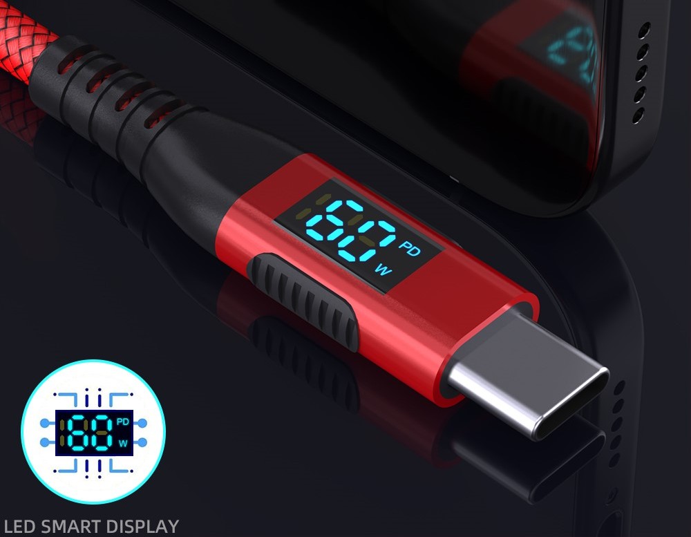 Integrovaný digitální displej zobrazuje aktuální výkon nabíjení v reálném čase, což poskytuje přehled o průběhu nabíjení. Kabel podporuje technologie PD, QC, AFC a FCP, díky čemuž zajišťuje rychlé a efektivní nabíjení.