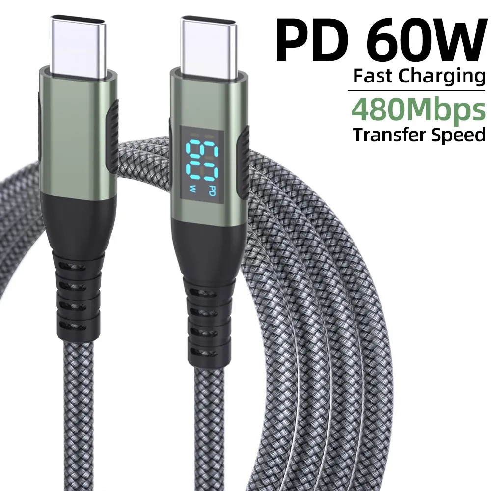 3m USB-C na USB-C kabel s displejem 60W rychlé nabíjení nylonový je spolehlivý kabel pro rychlé nabíjení i přenos dat u moderních zařízení. Podporuje výkon až 60 W (3A/20V), takže je ideální pro smartphony, tablety i další kompatibilní zařízení.