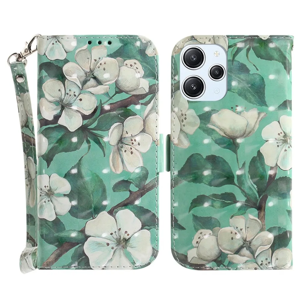 Peněženkové pouzdro Print na Xiaomi Redmi 12 4G/5G s motivem bílé květy a listy