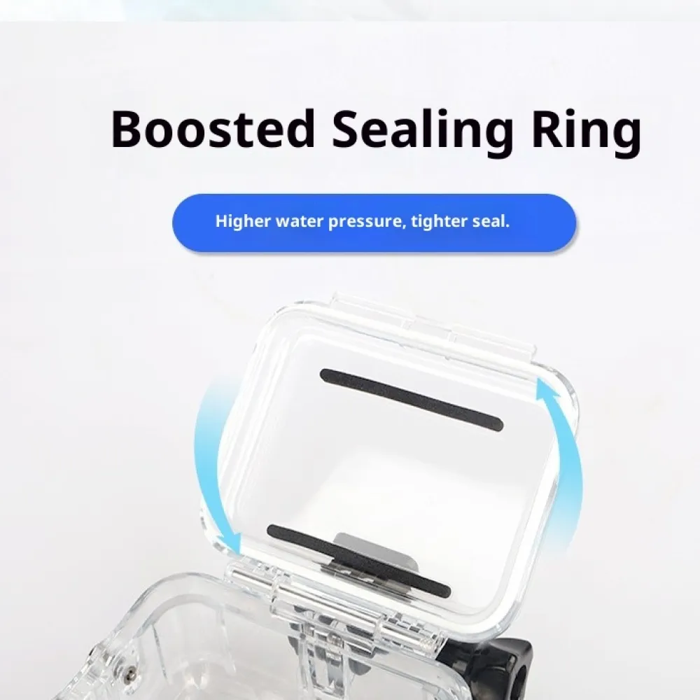 Uzavírací mechanismus je pevný a bezpečný, zároveň však umožňuje snadné vložení a vyjmutí kamery. Součástí balení je také vložka proti zamlžení, která pomáhá minimalizovat kondenzaci při změnách teploty během natáčení.