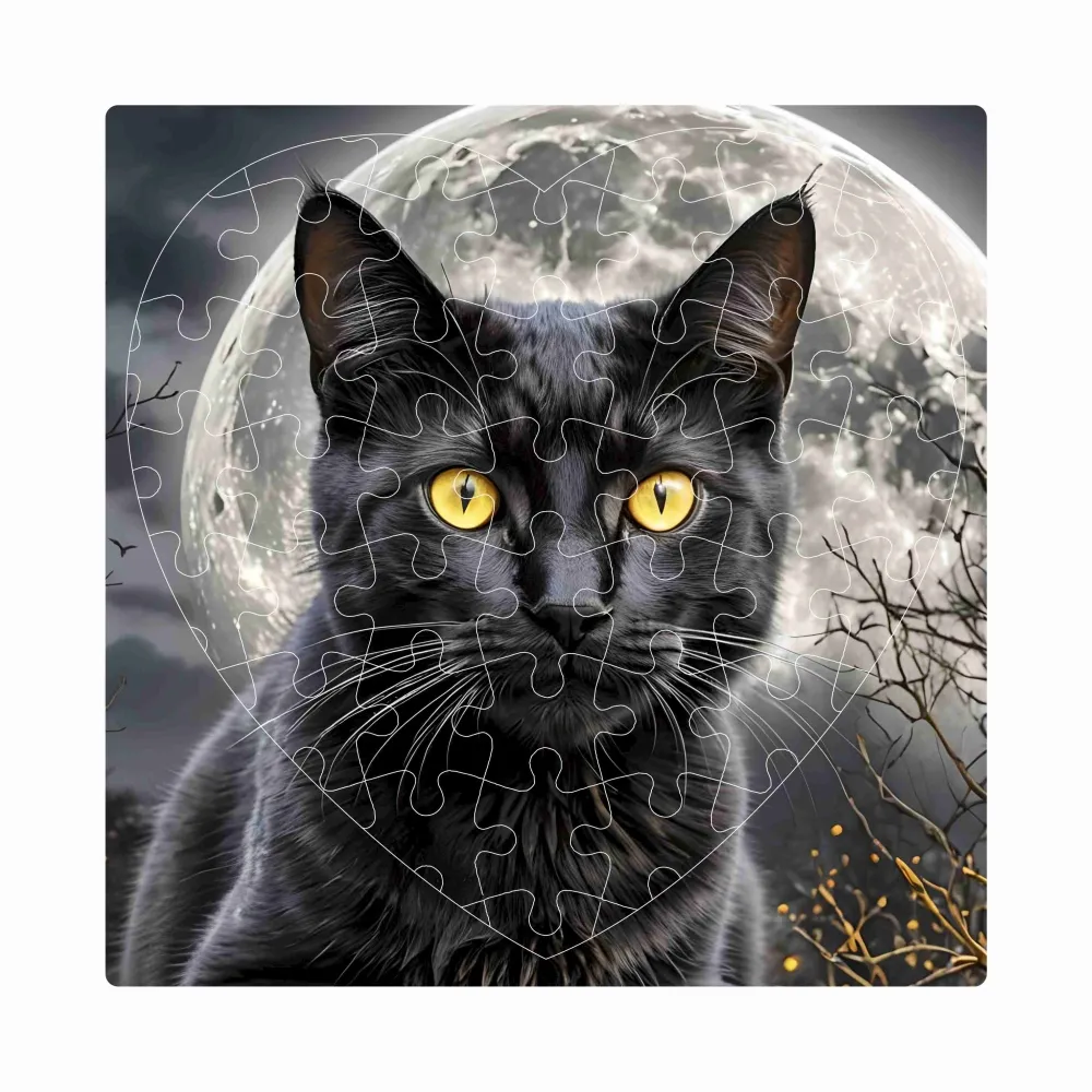 Kvalitní puzzle 19x18cm ve tvaru srdce (76 dílků) a obrázek černá kočka