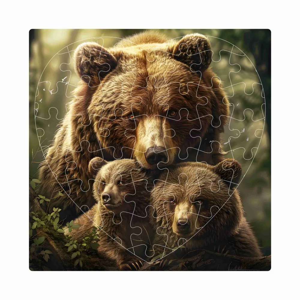 Kvalitní puzzle 19x18cm ve tvaru srdce (76 dílků) a obrázek medvědice s mláďaty