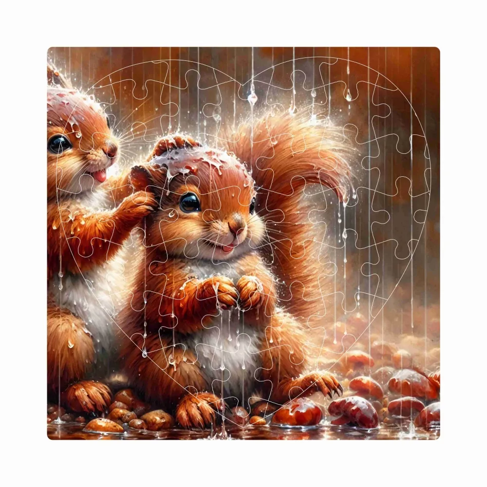 Kvalitní puzzle 19x18cm ve tvaru srdce (76 dílků) a obrázek veverky