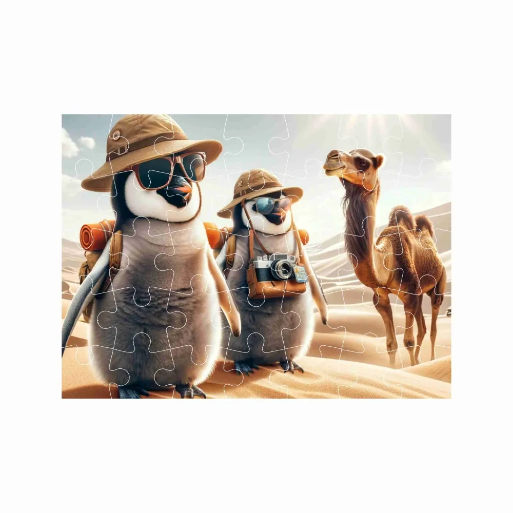 Puzzle 27x19,5cm (35 dílků) s obrázkem - tučňáci na poušti