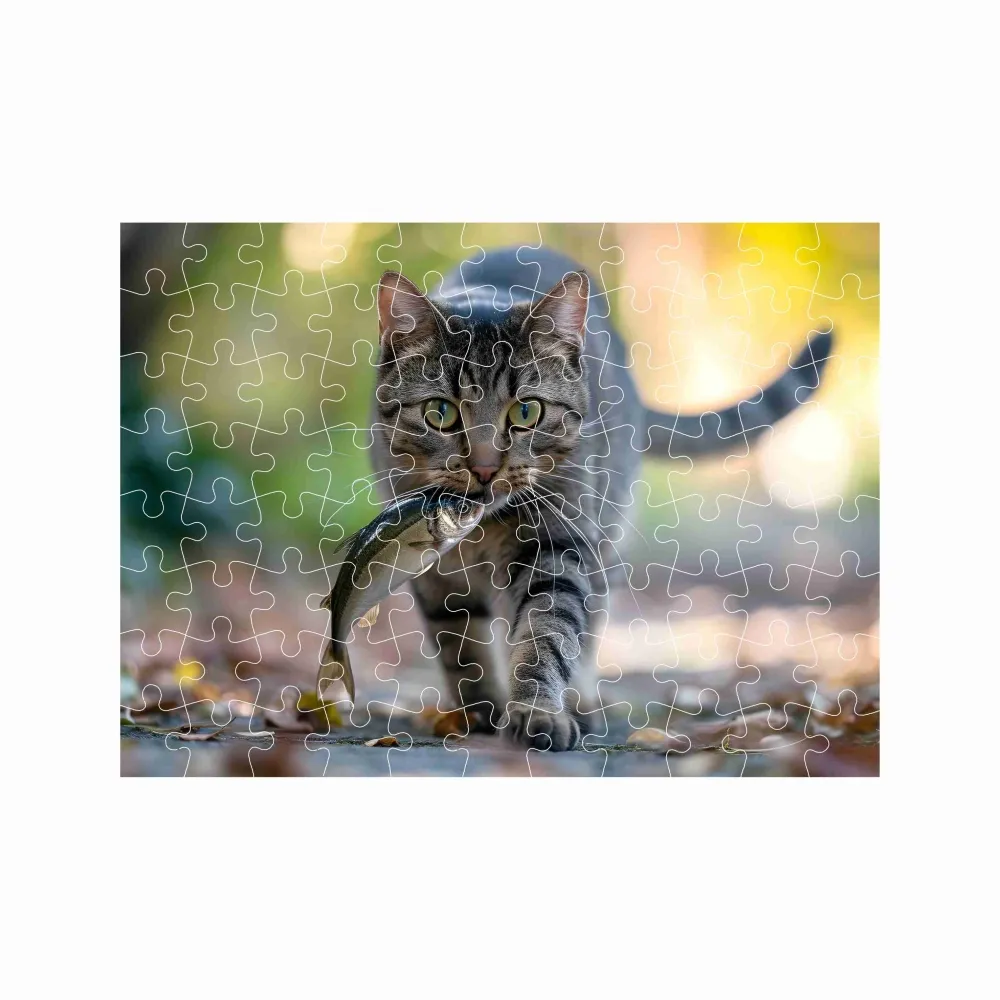 Puzzle 27x19,5cm (88 dílků) s obrázkem - kočka s rybou