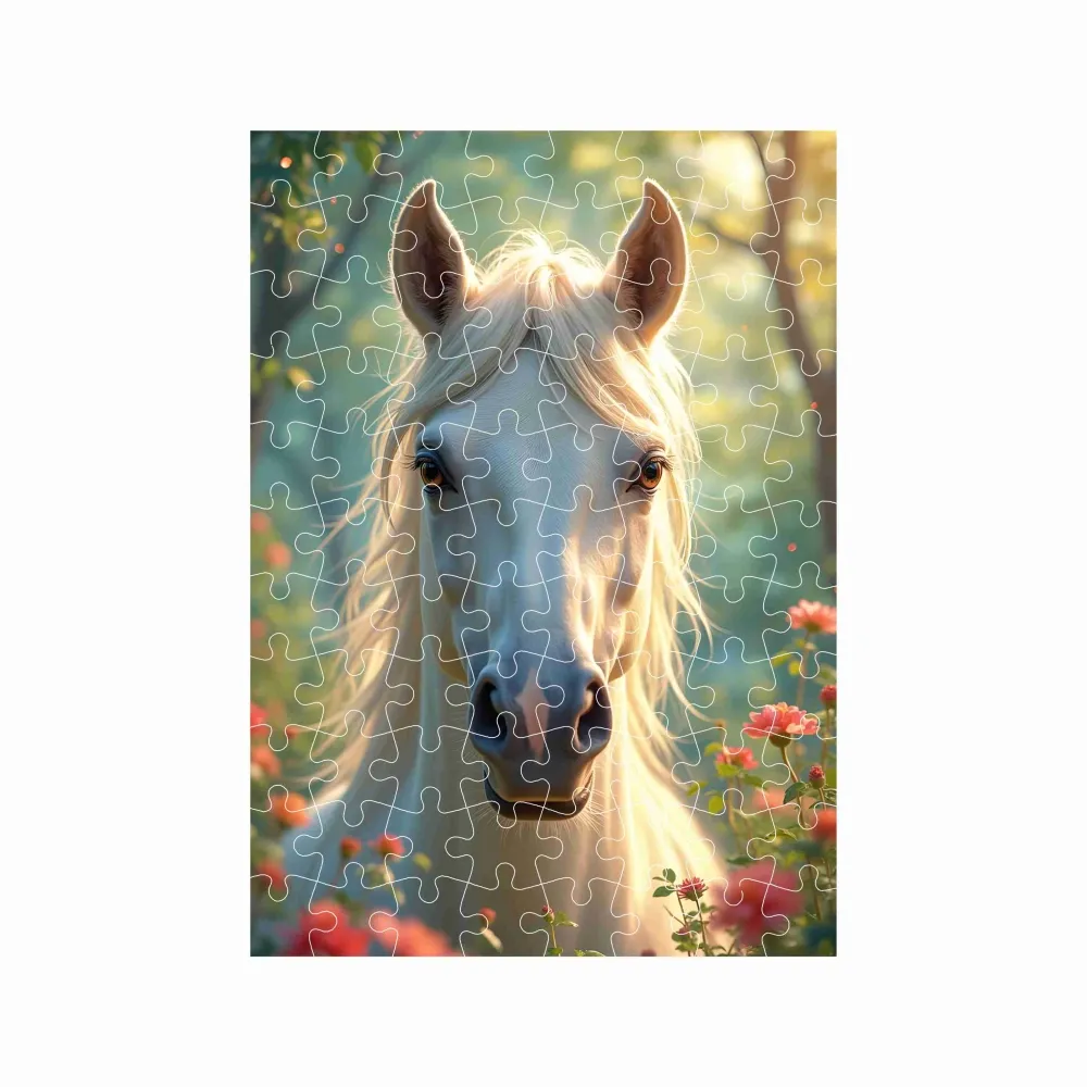 Originální puzzle formátu A4 29x20cm (120 dílků) přináší radost z tvoření i krásný výsledek plný barev a pozitivní energie. Po složení se objeví veselý motiv bílý kůň mezi květy, který rozzáří každý dětský pokoj a přinese spoustu zábavy při skládání. Díky ideální velikosti a přiměřenému počtu dílků se hodí pro děti i dospělé, kteří si rádi odpočinou u kreativní činnosti.