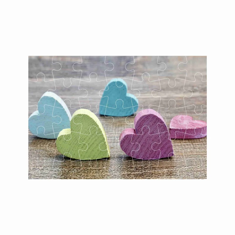 Originální puzzle formátu A4 29x20cm (40 dílků) přináší radost z tvoření i krásný výsledek plný barev a pozitivní energie. Po složení se objeví veselý motiv dřevěná srdíčka, který rozzáří každý dětský pokoj a přinese spoustu zábavy při skládání. Díky ideální velikosti a přiměřenému počtu dílků se hodí pro děti i dospělé, kteří si rádi odpočinou u kreativní činnosti.