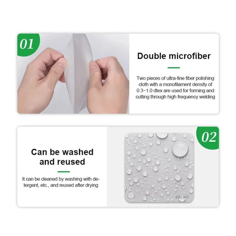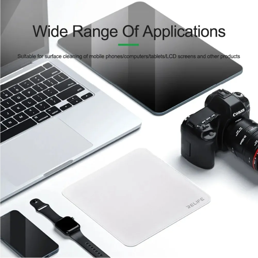 Lešticí utěrka z mikrovlákna Relife s dvojitou vrstvou je vysoce kvalitní, dvouvrstvá utěrka určená pro pečlivé čištění a leštění choulostivých povrchů. Je ideální pro elektronické obrazovky, optické čočky a další citlivé materiály a zajišťuje bezchybný povrch bez rizika poškrábání nebo poškození.