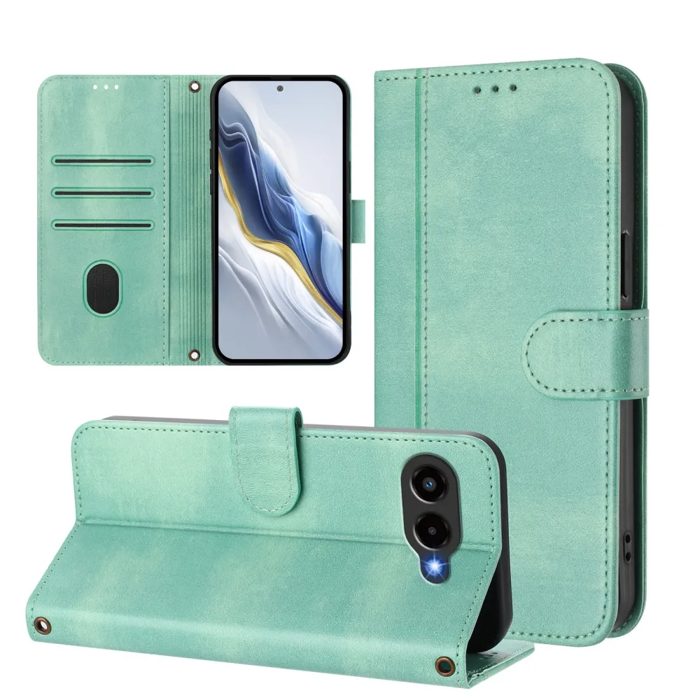 Stylově jednoduché knížkové pouzdro Retros na mobil T-Mobile T Phone 3 ve světlezeleném provedení kombinuje nadčasový vzhled s praktickými prvky pro každodenní použití. Kvalitní umělá kůže poskytuje telefonu spolehlivou ochranu před poškozením, prachem i oděrkami, zatímco magnetické zavírání a přiložené poutko zvyšují bezpečnost při přenášení. Uvnitř peněženkového obalu se nacházejí přihrádky na karty nebo bankovky, takže snadno nahradí i klasickou peněženku. Tento elegantní kryt na telefon ocení každý, kdo hledá praktické a přitom vkusné řešení pro každodenní ochranu svého zařízení.