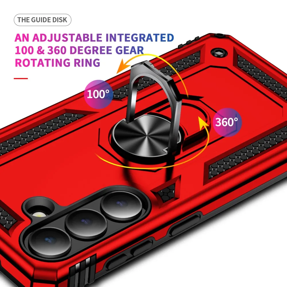 Ring odolný hybridní kryt s úchytem na prst na Samsung Galaxy S26+ - červený