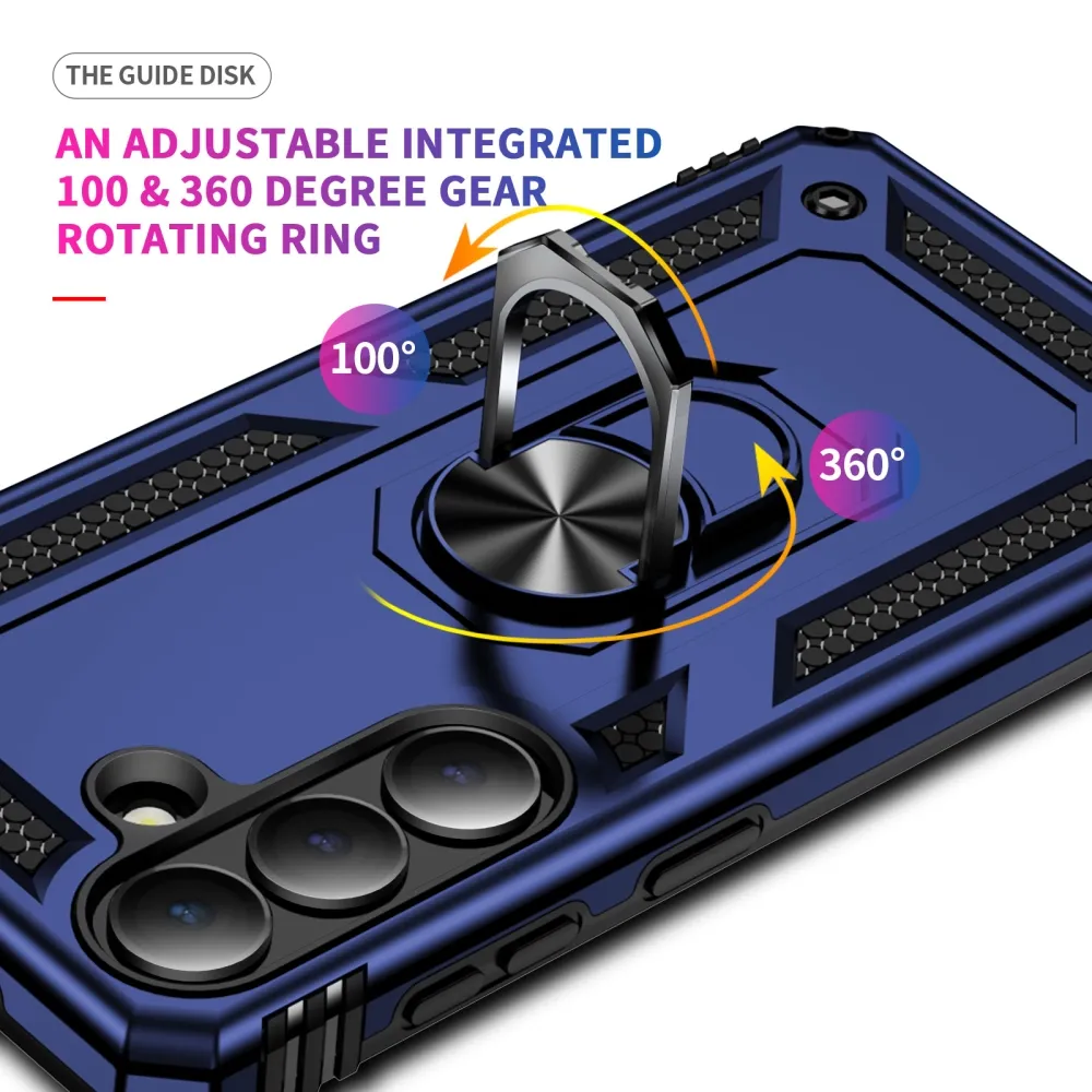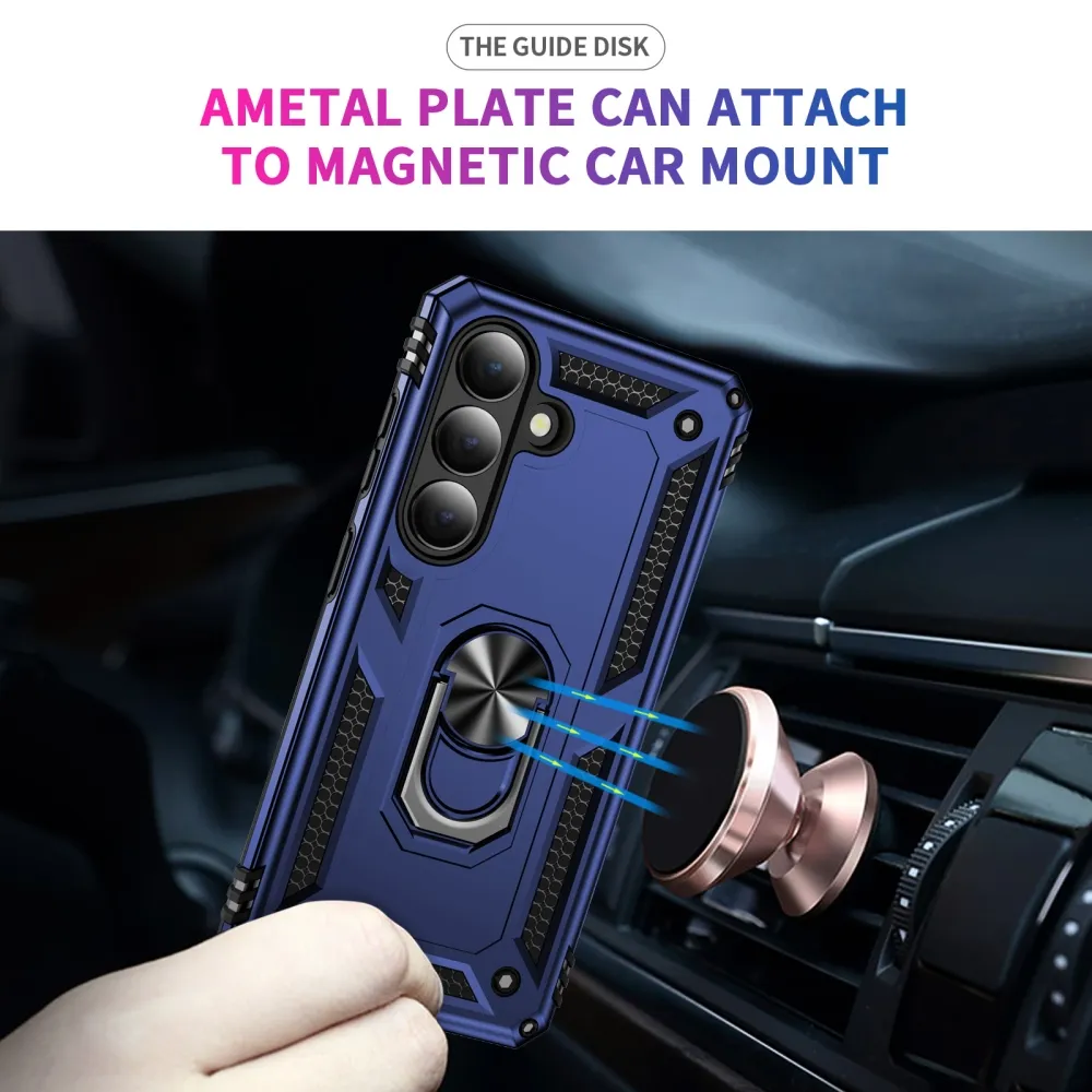 Ring odolný hybridní kryt s úchytem na prst na Samsung Galaxy S26 - modrý