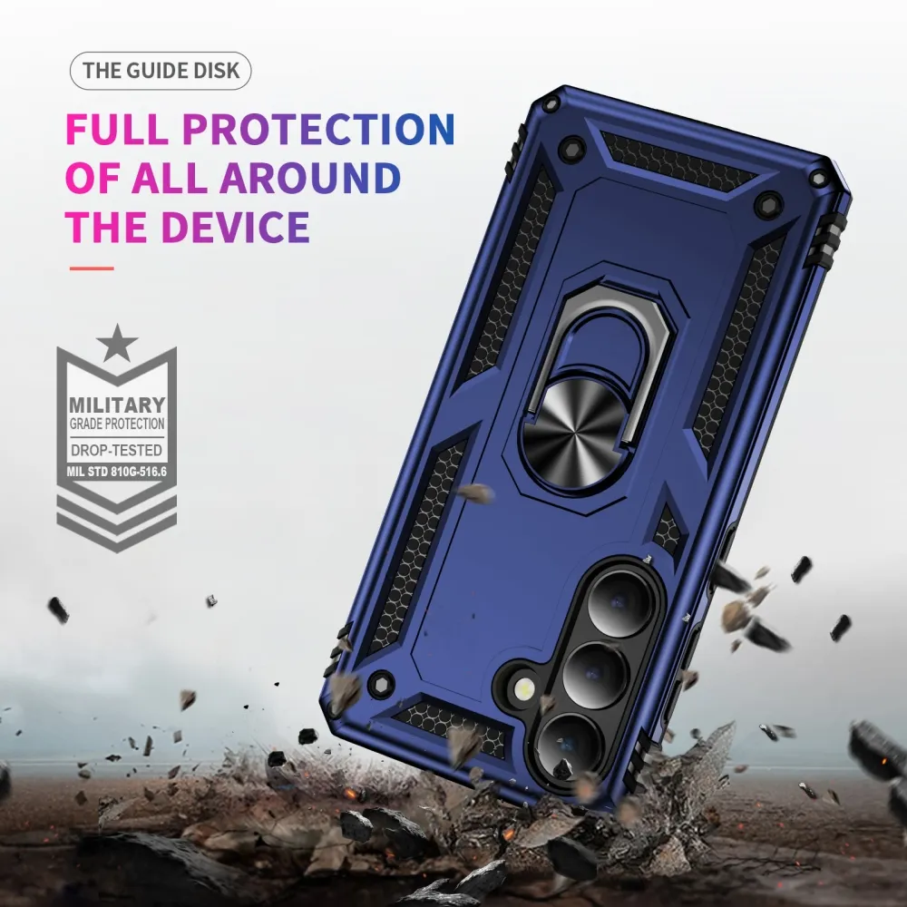 Ring odolný hybridní kryt s úchytem na prst na Samsung Galaxy S26+ - modrý