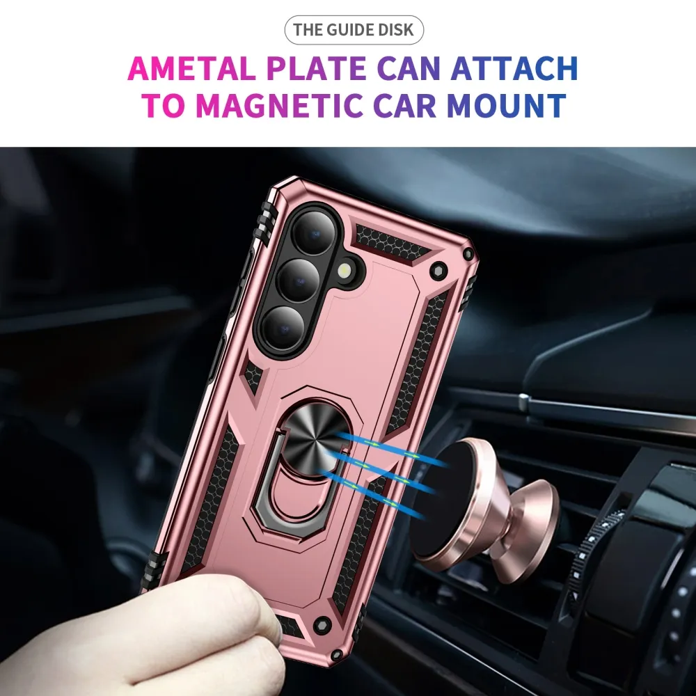 Ring odolný hybridní kryt s úchytem na prst na Samsung Galaxy S26 - růžovozlatý