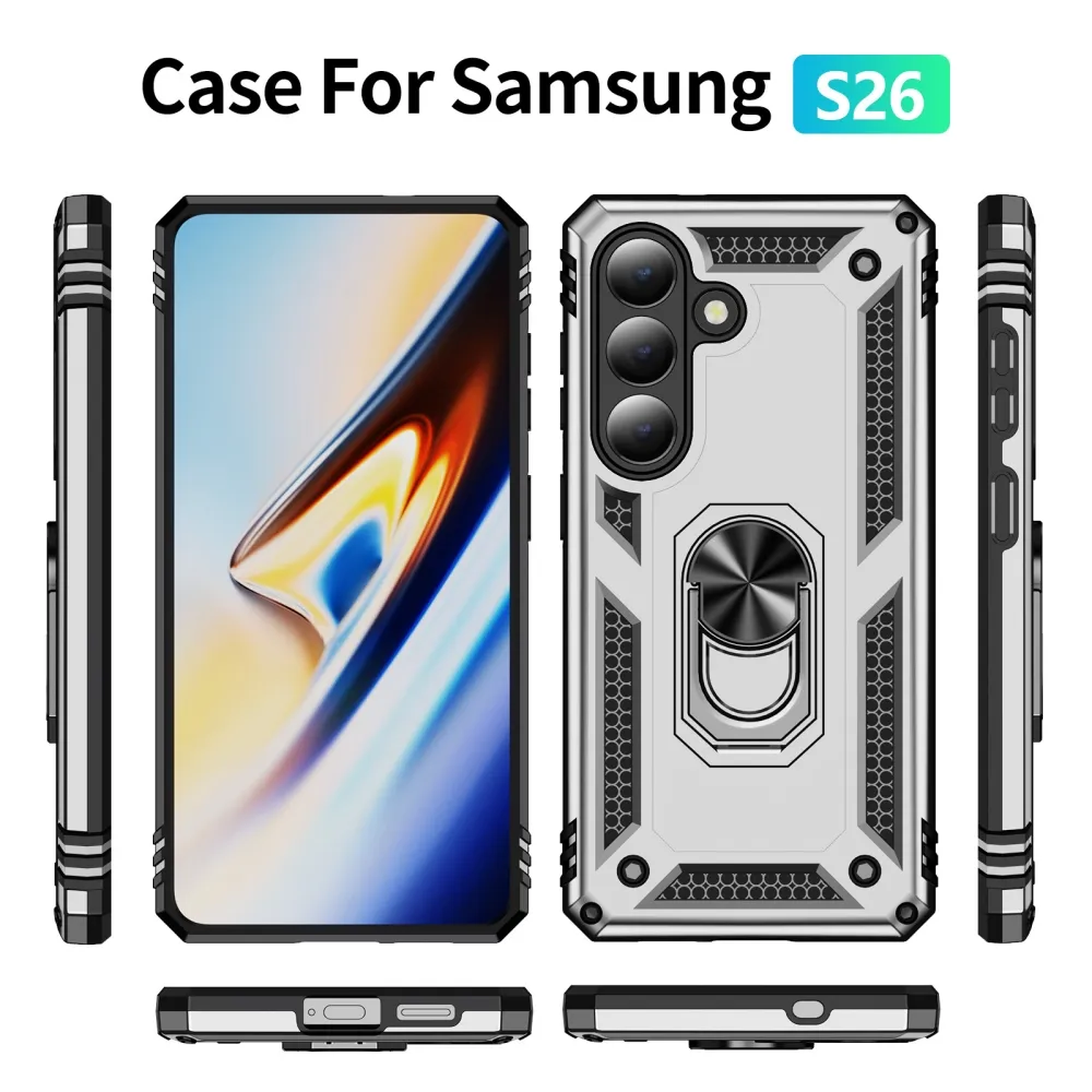 Ring odolný hybridní kryt s úchytem na prst na Samsung Galaxy S26 - stříbrný