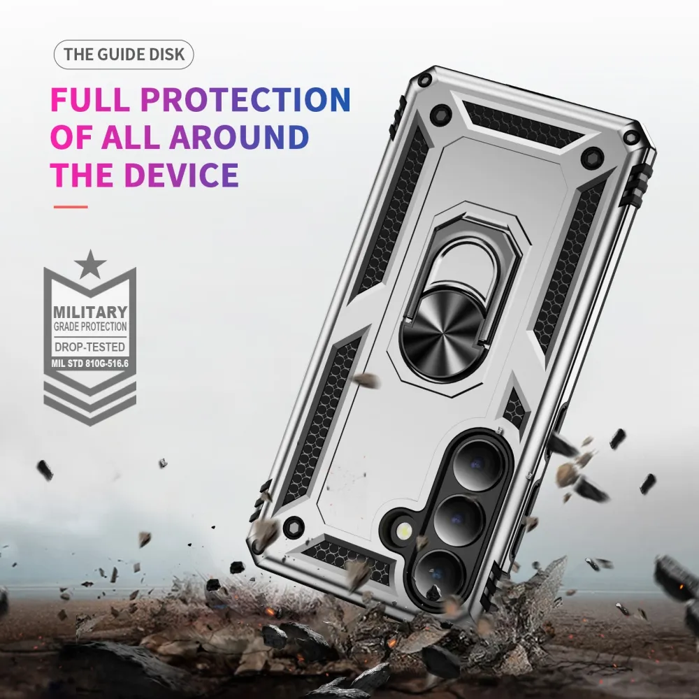 Stříbrný odolný hybridní obal s úchytem na prst na mobil Samsung Galaxy S26