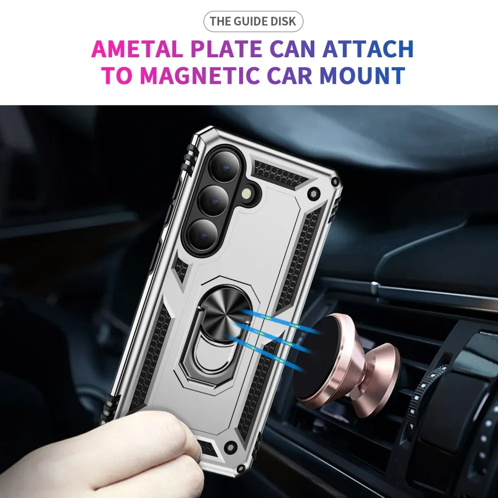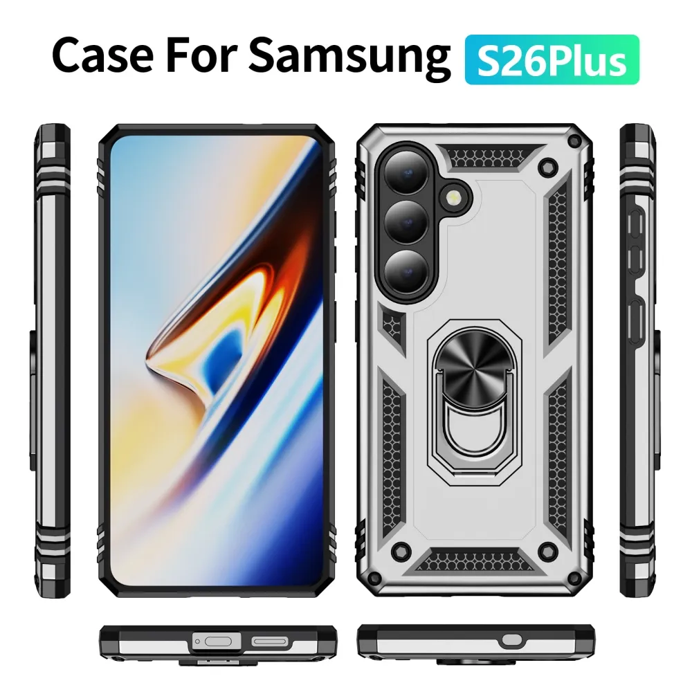 Ring odolný hybridní kryt s úchytem na prst na Samsung Galaxy S26+ - stříbrný