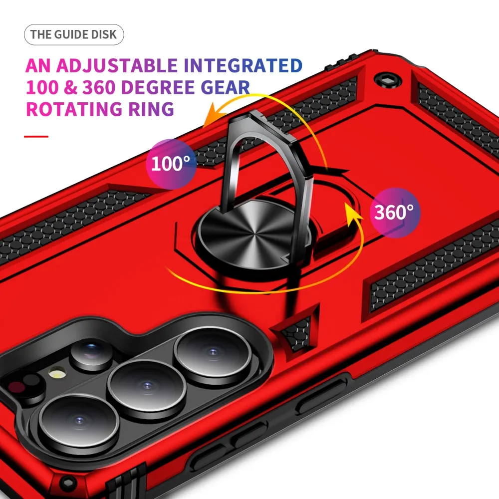 Ring odolný hybridní kryt s úchytem na prst na Samsung Galaxy S26 Ultra - červený