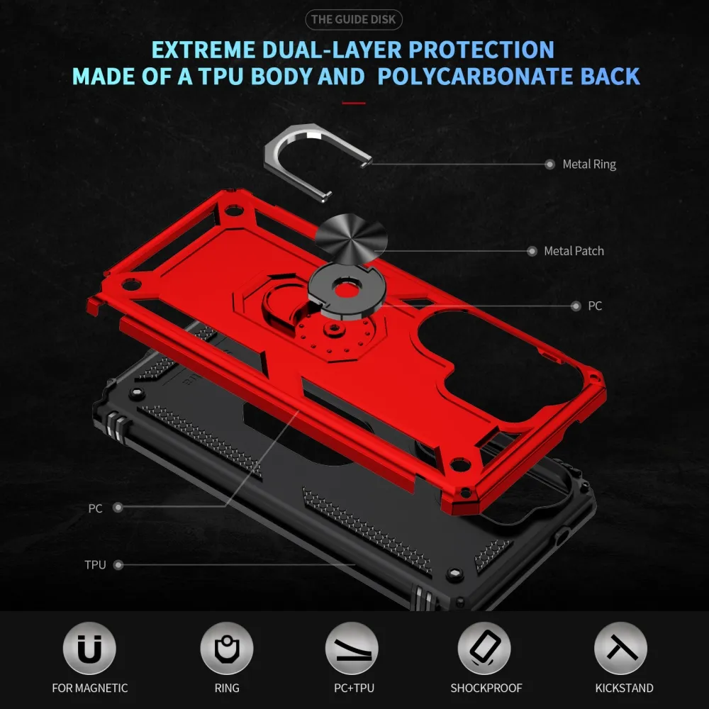 Ring odolný hybridní kryt přináší bezpečí vašemu telefonu po celém obvodu a zezadu, pohyblivá krytka čočky a mírně zvýšené okraje zajišťují dokonalou ochranu citlivých částí. Kovová část umožňuje použití magnetických držáků do auta.