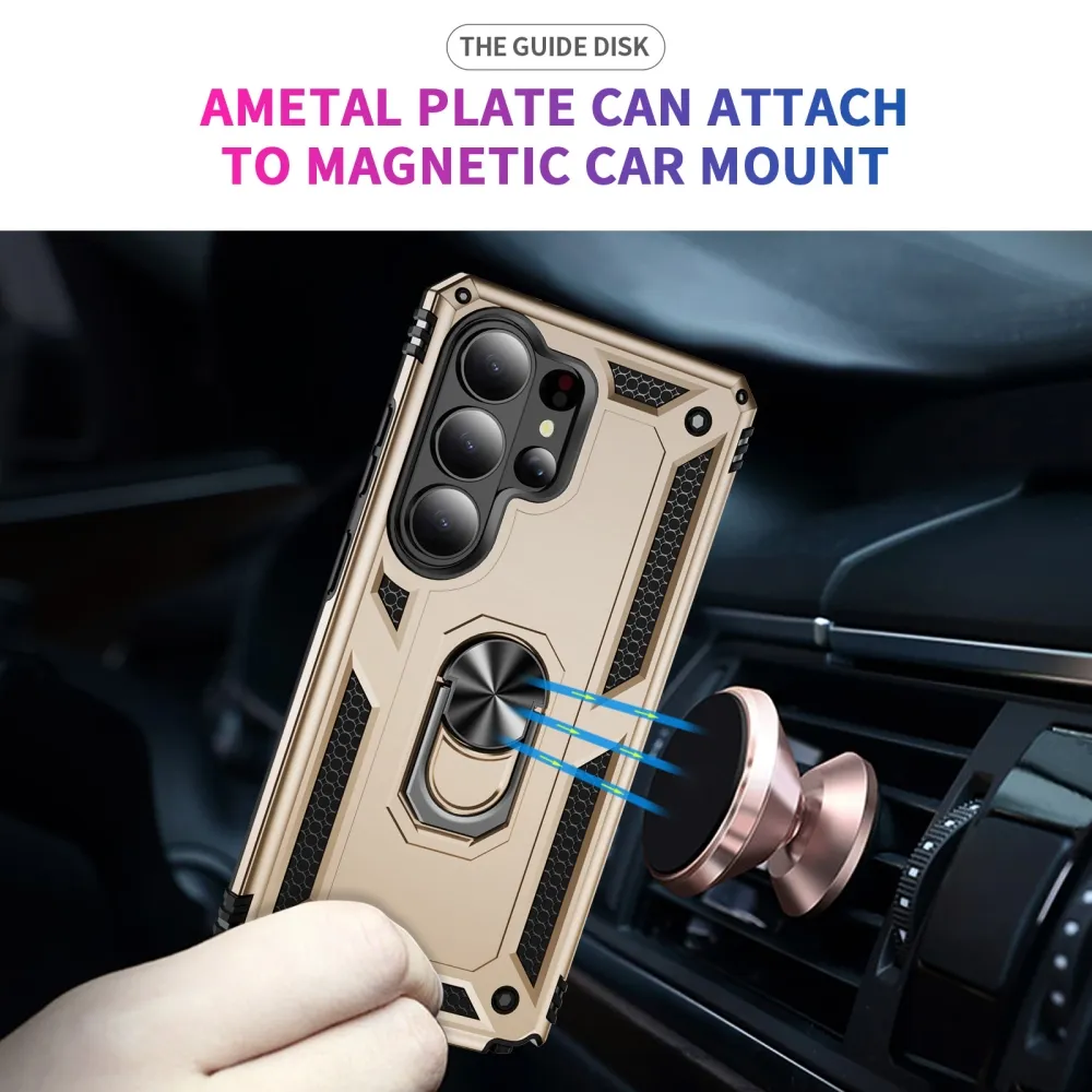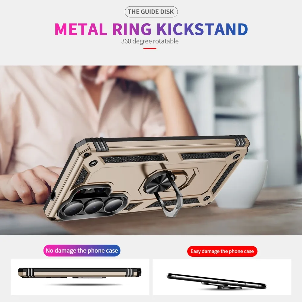Ring odolný hybridní kryt s úchytem na prst na Samsung Galaxy S26 Ultra - zlatý