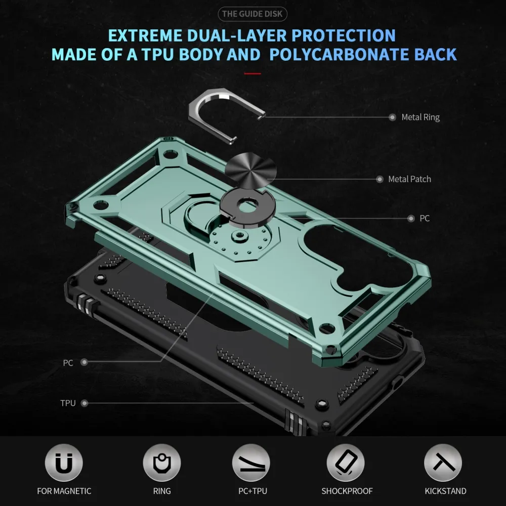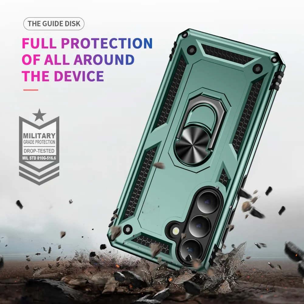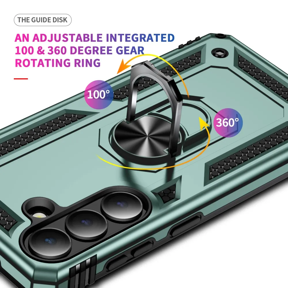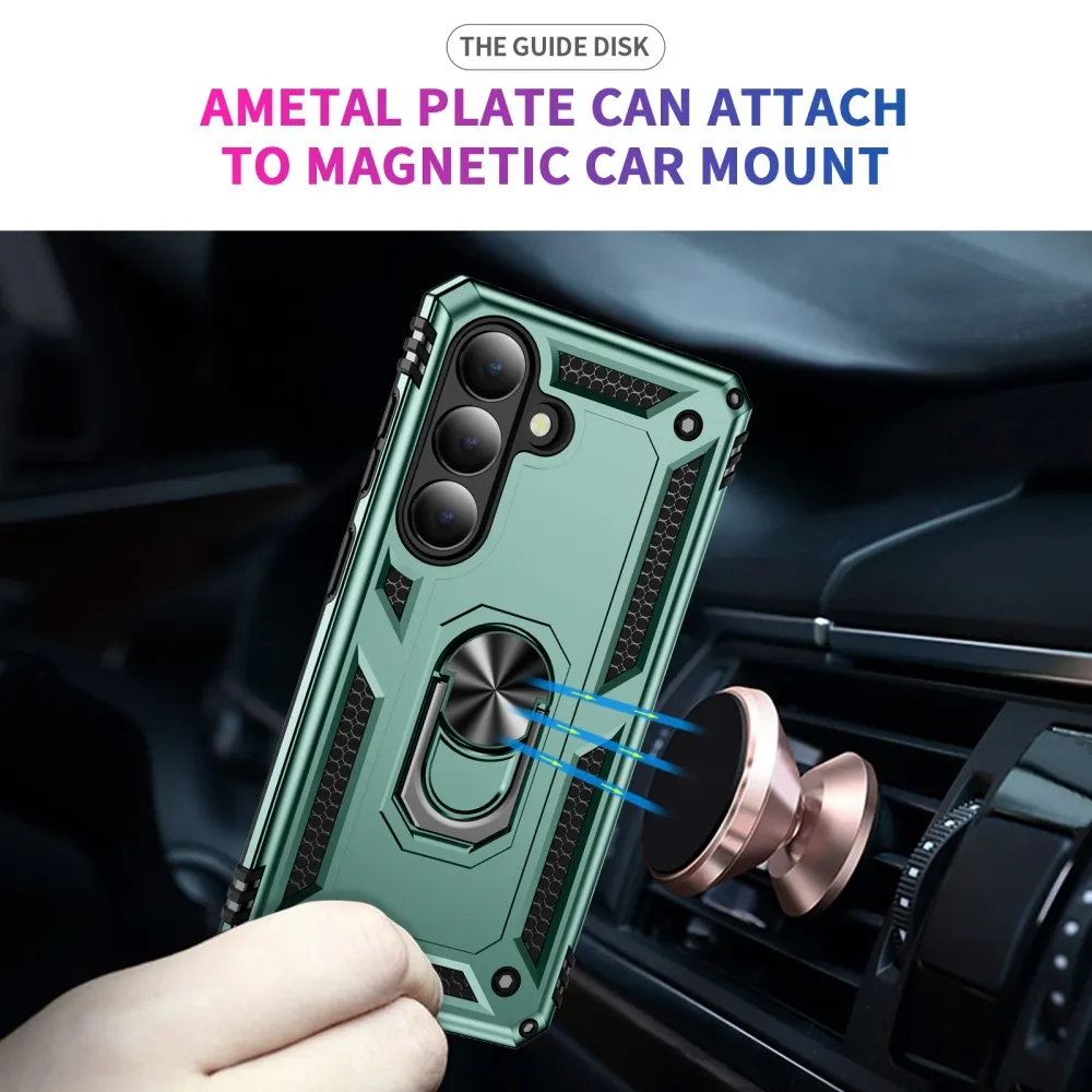 Ring odolný hybridní kryt s úchytem na prst na Samsung Galaxy S26+ - zelený