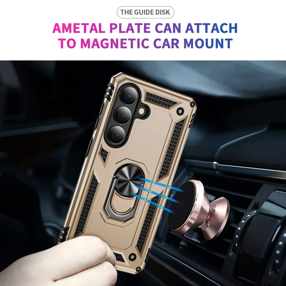 Ring odolný hybridní kryt s úchytem na prst na Samsung Galaxy S26 - zlatý
