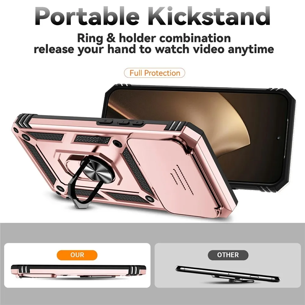 Růžovozlatý hybridní odolný obal Ring s úchytem na prst na mobil Xiaomi 15T Pro