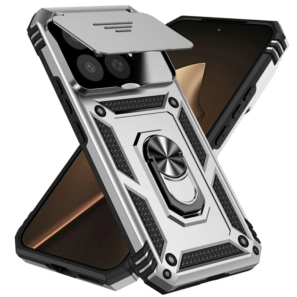 Stříbrný hybridní odolný obal Ring s úchytem na prst na mobil Xiaomi 15T Pro