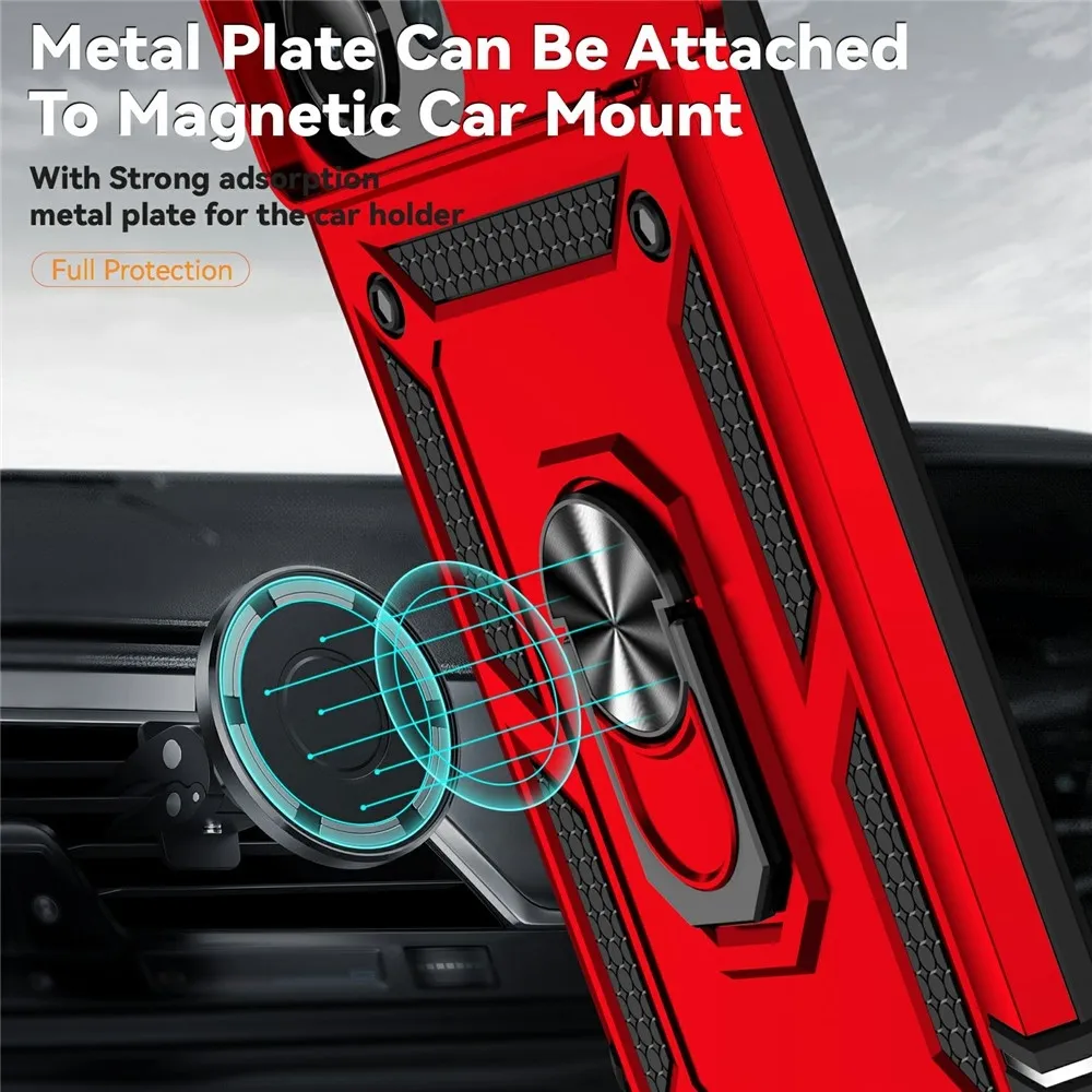 Červený hybridní odolný obal Ring s úchytem na prst na mobil Xiaomi Redmi 15C 4G/5G (173mm)