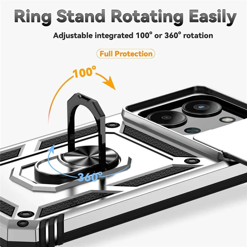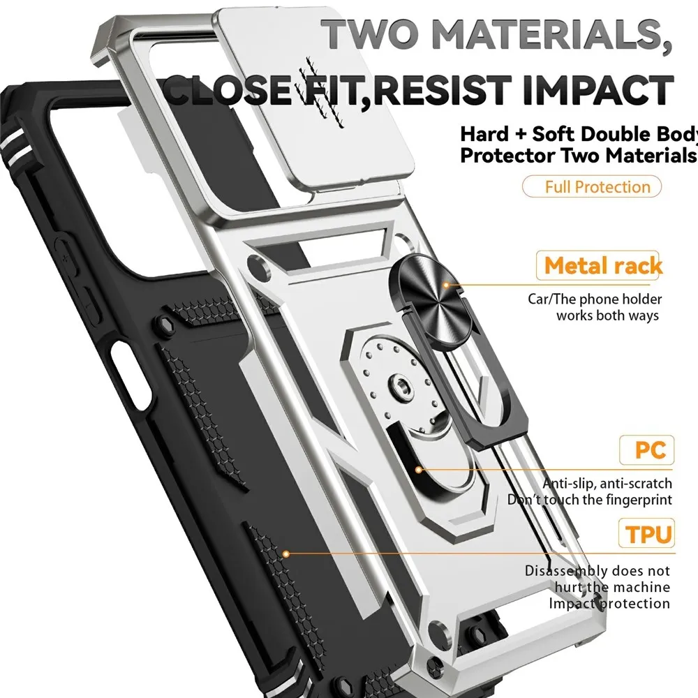 Ring odolný hybridní kryt přináší bezpečí vašemu telefonu po celém obvodu a zezadu, pohyblivá krytka čočky a mírně zvýšené okraje zajišťují dokonalou ochranu citlivých částí. Kovová část umožňuje použití magnetických držáků do auta.