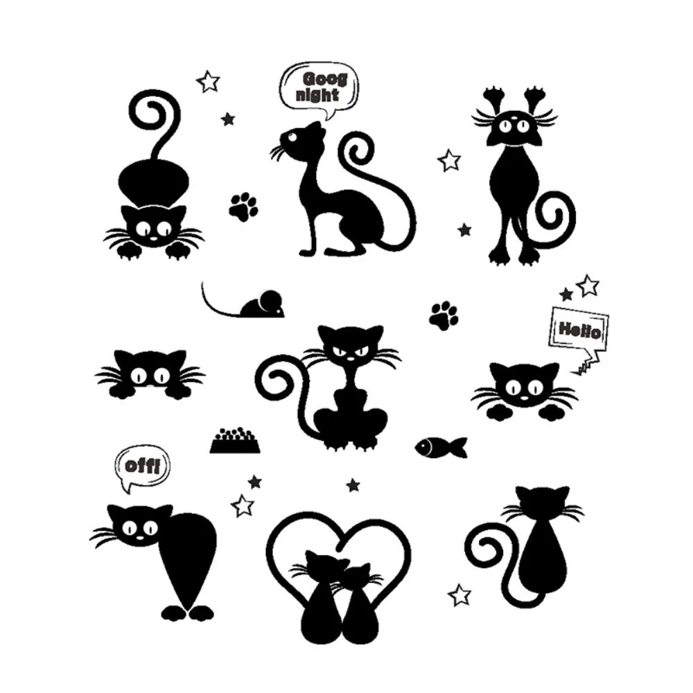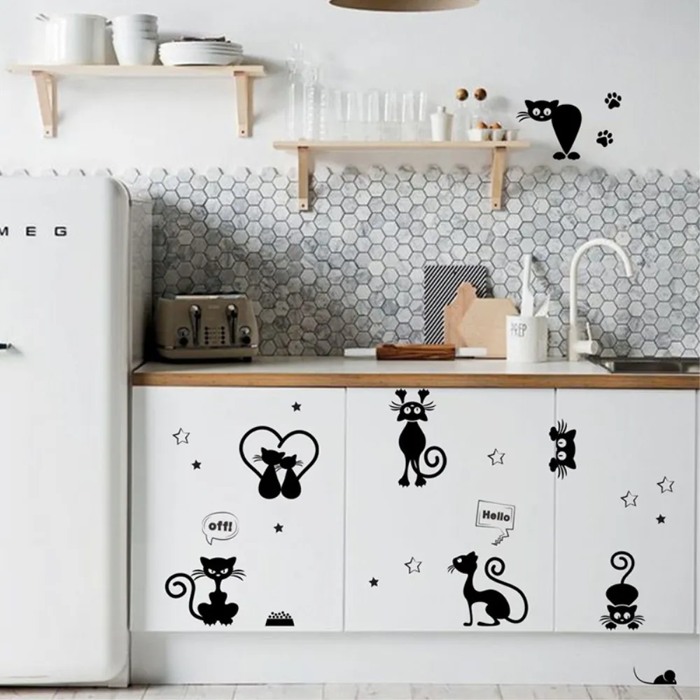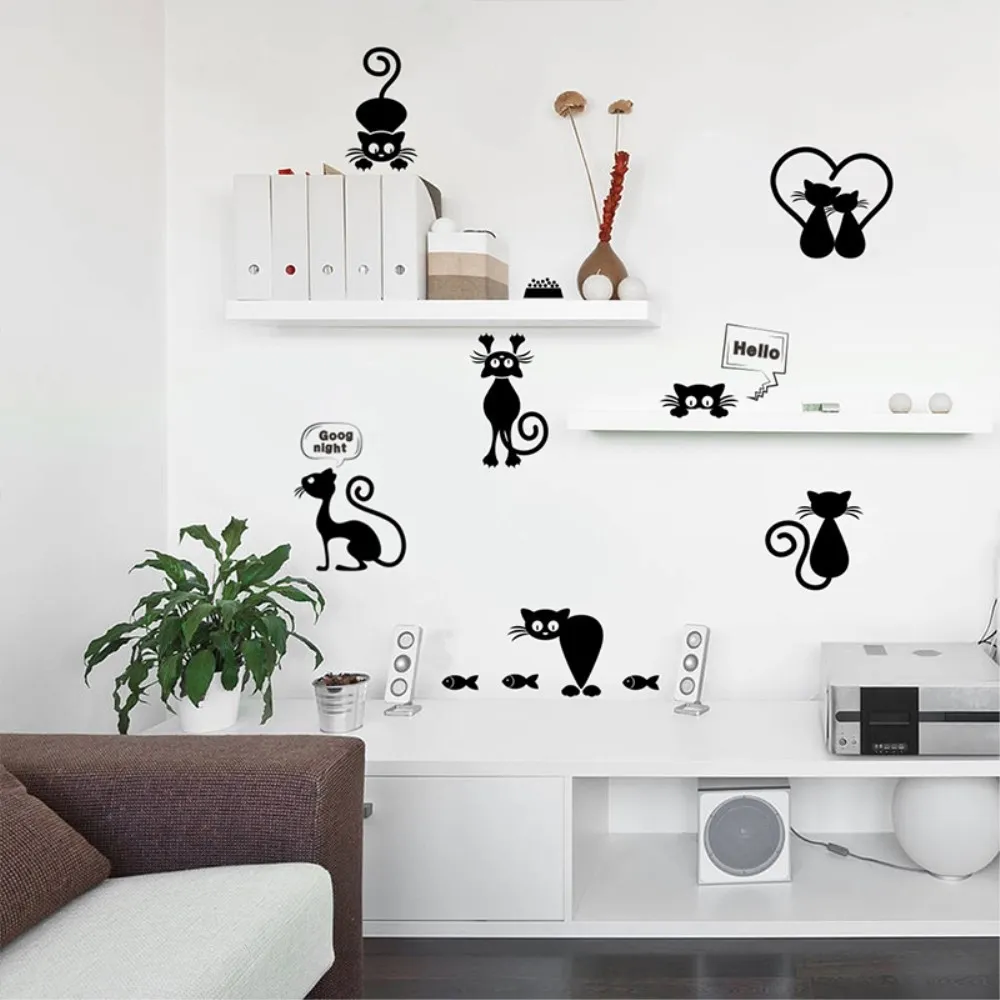 Sada samolepek na zeď nebo nábytek - černá kočka