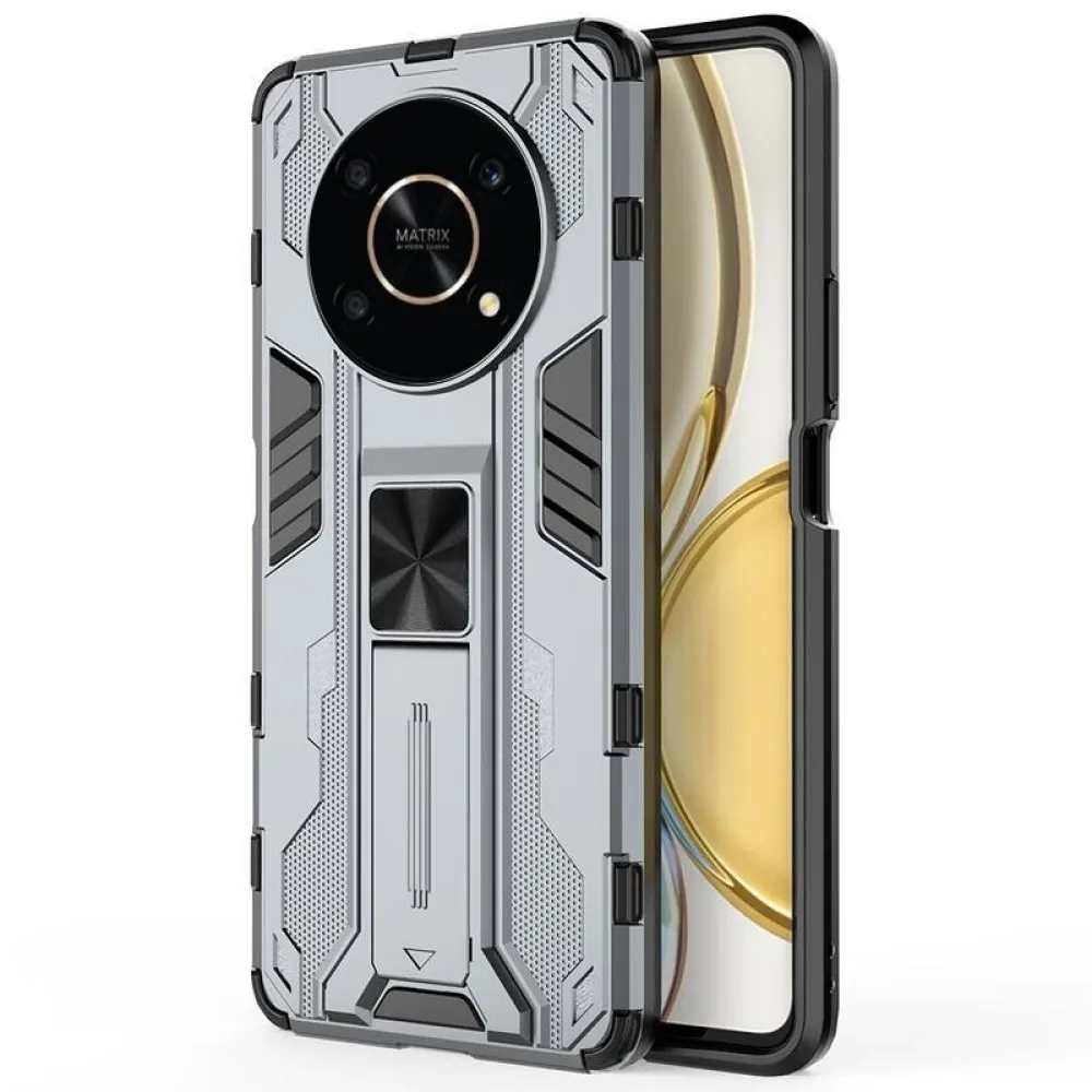 Shock odolný hybridní kryt s výklopným stojánkem na mobil Honor Magic 4 Lite 5G - šedý