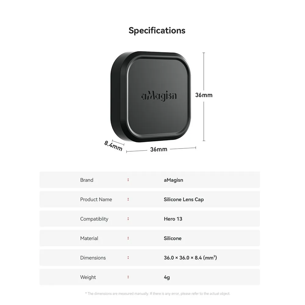 Značka: AMAGISN Typ příslušenství: silikonová krytka objektivu Materiál: silikon Kompatibilita: GoPro Hero 13 Barva: černá Rozměry: 43,1 × 15,3 × 15,2 mm Hmotnost: 20 g