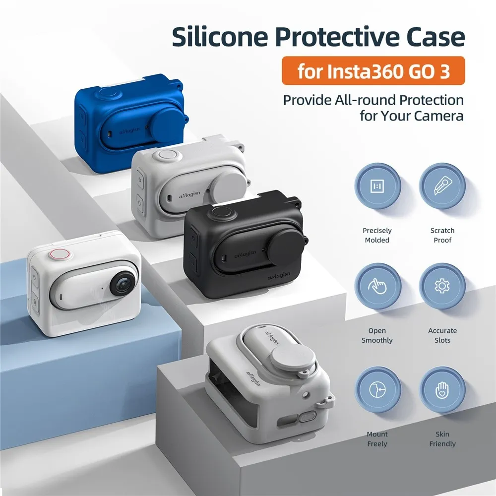 Silikonový ochranný obal AMAGISN je navržen pro kameru Insta360 GO 3 a poskytuje spolehlivou ochranu proti nárazům, poškrábání a běžnému opotřebení při každodenním používání. Přesné tvarování pevně drží kameru na místě a zároveň zachovává plný přístup k tlačítkům, portům i objektivu. Obal pomáhá minimalizovat riziko poškození při pádu i při aktivním pohybu.