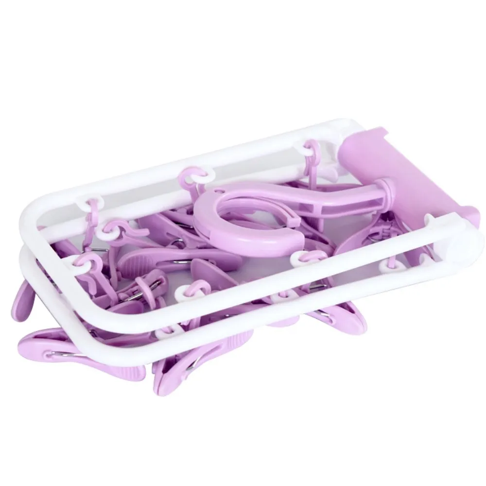 Fialový skládací plastový sušák na ponožky s 12 kolíčky