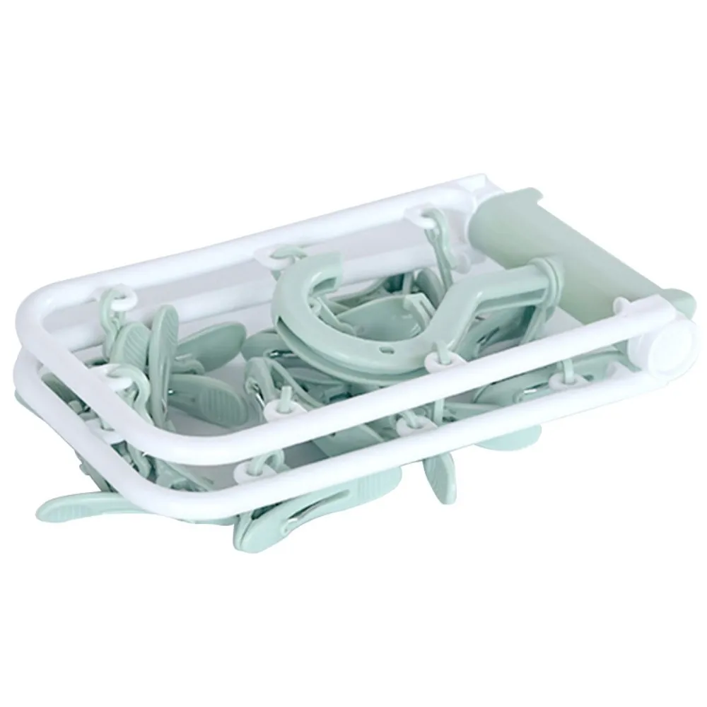 Zelený skládací plastový sušák na ponožky s 12 kolíčky