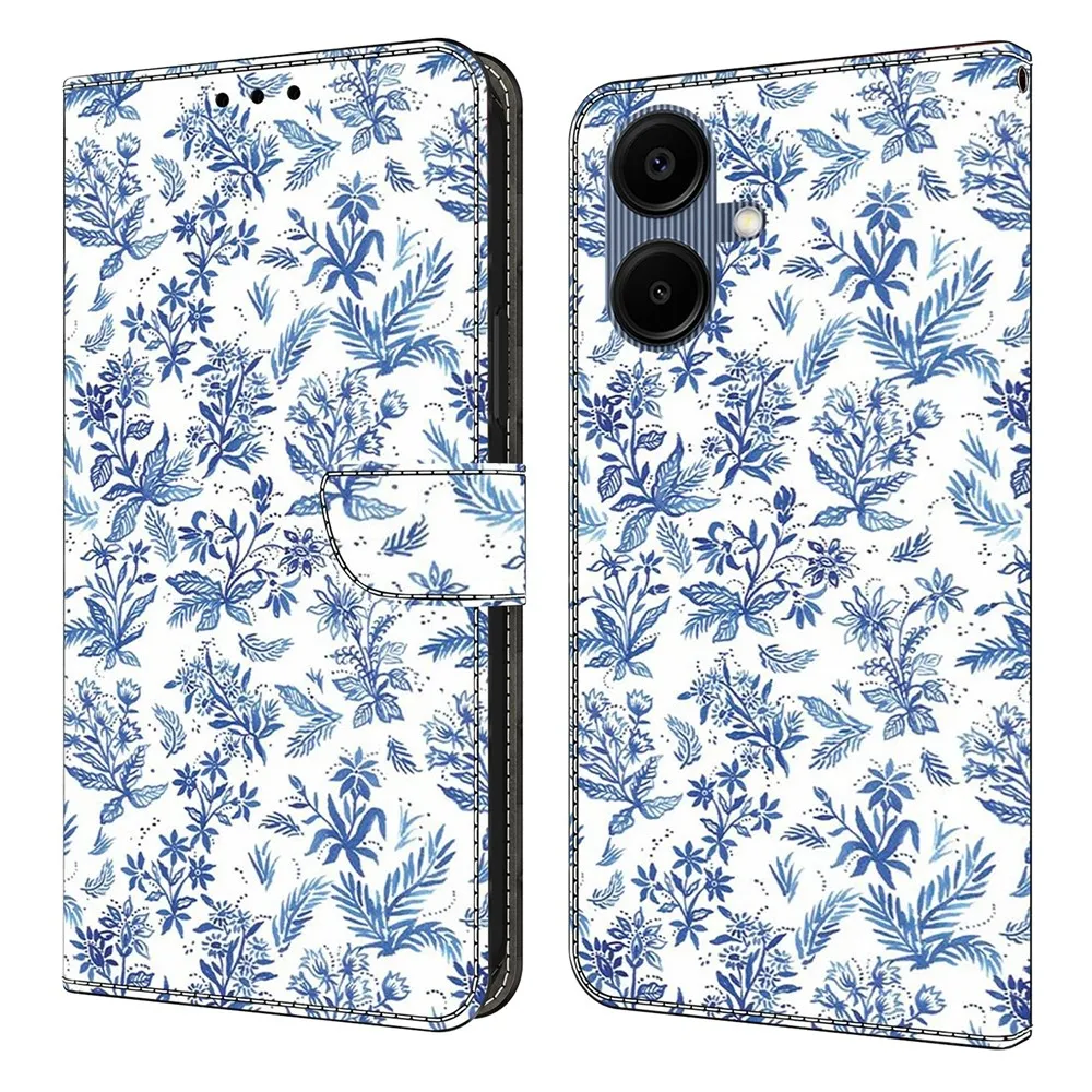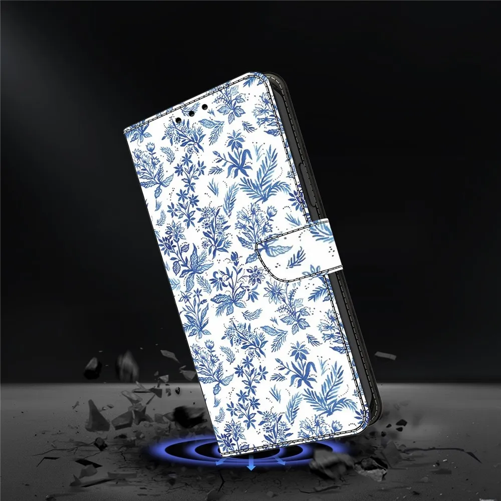 ✅【Prémiové materiály】Toto pouzdro Smooth na mobil Samsung Galaxy A07 4G a obrázek modré květiny je vyrobeno z vysoce kvalitní PU kůže a TPU, které nabízejí měkký, hladký a odolný pocit pro dlouhotrvající ochranu.