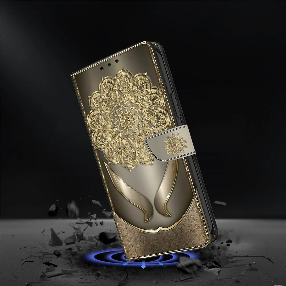 ✅【Prémiové materiály】Toto pouzdro Smooth na mobil Samsung Galaxy A07 4G a obrázek zlaté květy je vyrobeno z vysoce kvalitní PU kůže a TPU, které nabízejí měkký, hladký a odolný pocit pro dlouhotrvající ochranu.