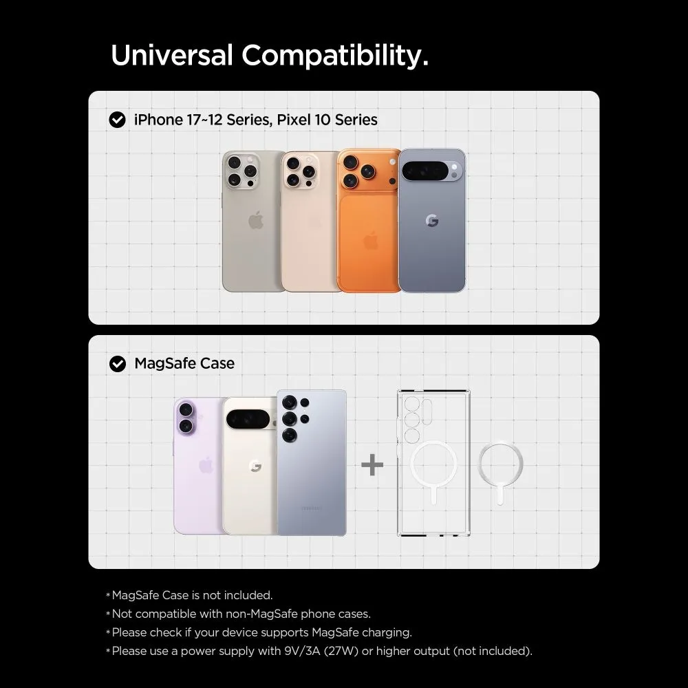 Podpora rychlého bezdrátového nabíjení až 15 W poskytuje efektivní doplnění energie pro kompatibilní zařízení. Technologie Qi2 zajišťuje lepší stabilitu nabíjení a vyšší účinnost, což přispívá k pohodlnému každodennímu používání.