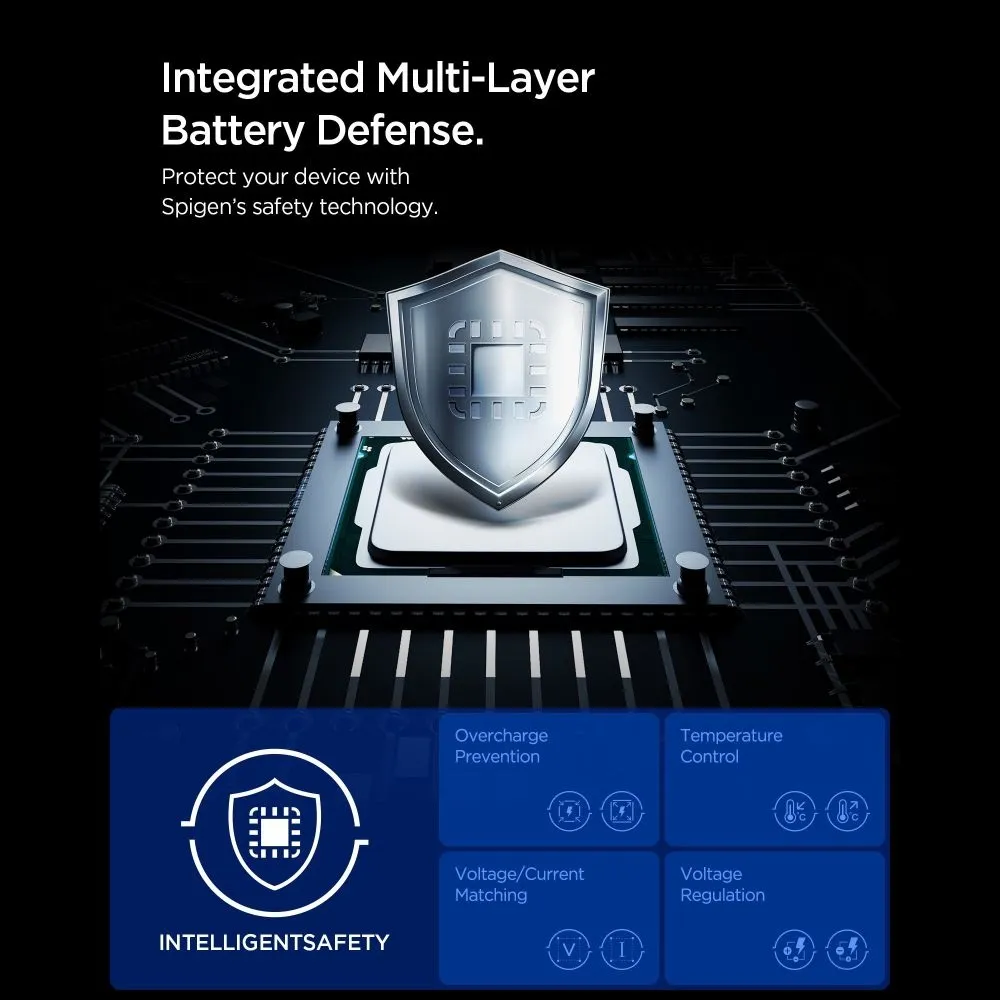 Díky moderním technologiím nabíječka optimalizuje výkon podle připojeného zařízení a zajišťuje bezpečné nabíjení bez přehřívání. Integrované ochrany chrání proti přepětí, zkratu i přetížení, což zvyšuje spolehlivost při používání.