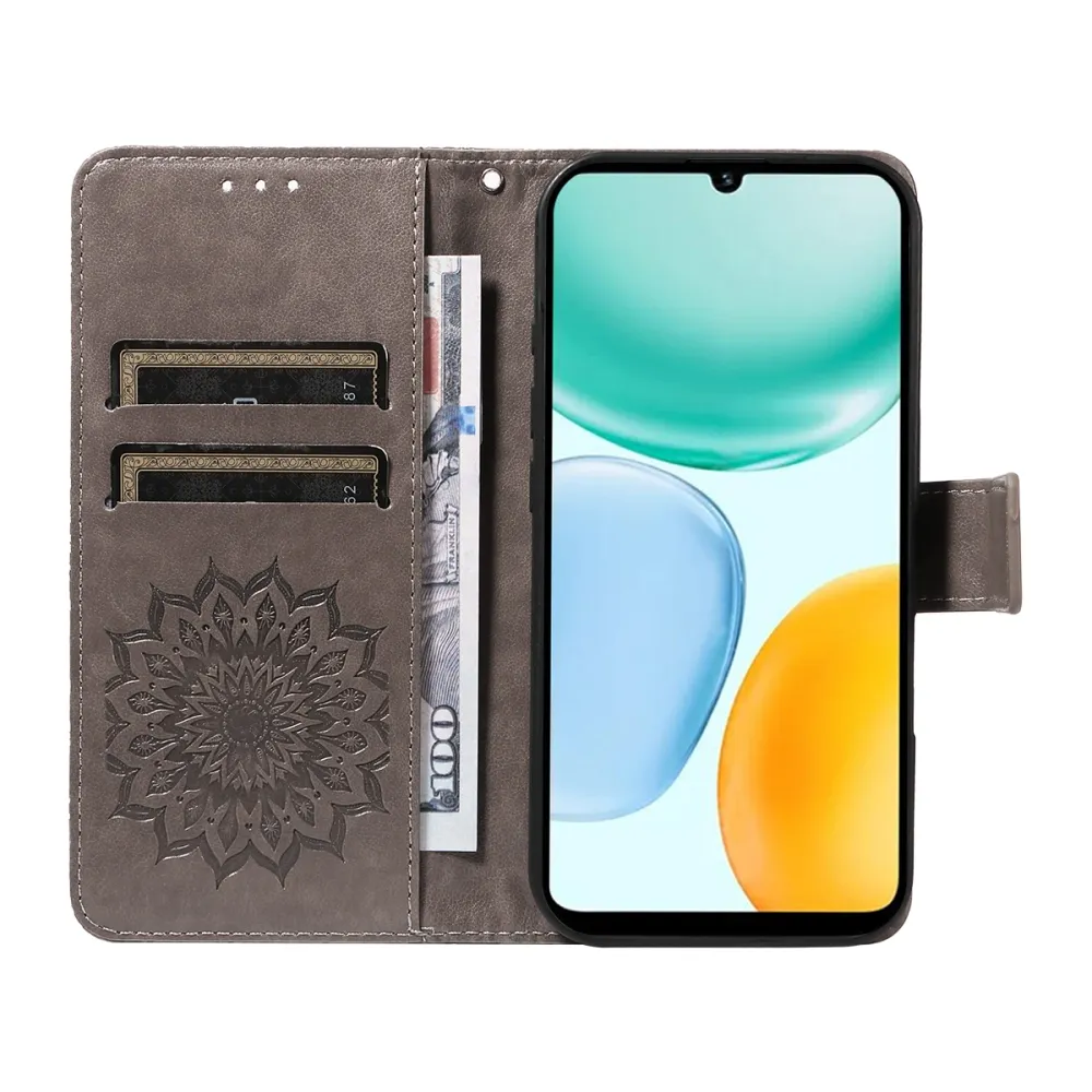 Šedé peněženkové pouzdro Sunflower na mobil Honor X5c Plus