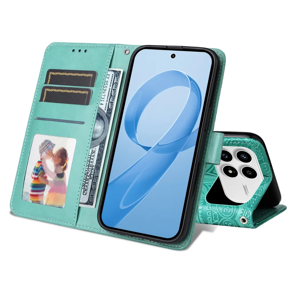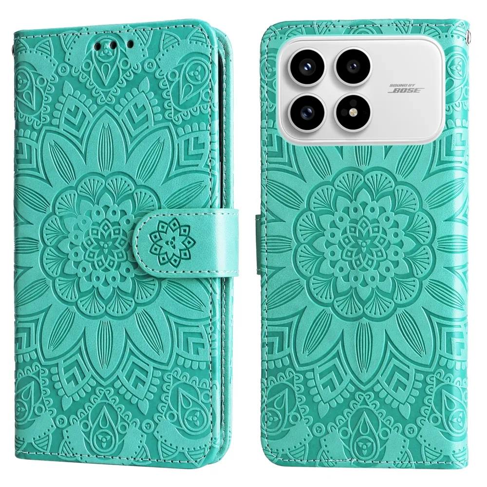Modrozelené peněženkové pouzdro Sunflower na mobil Xiaomi Poco F8 Pro 5G