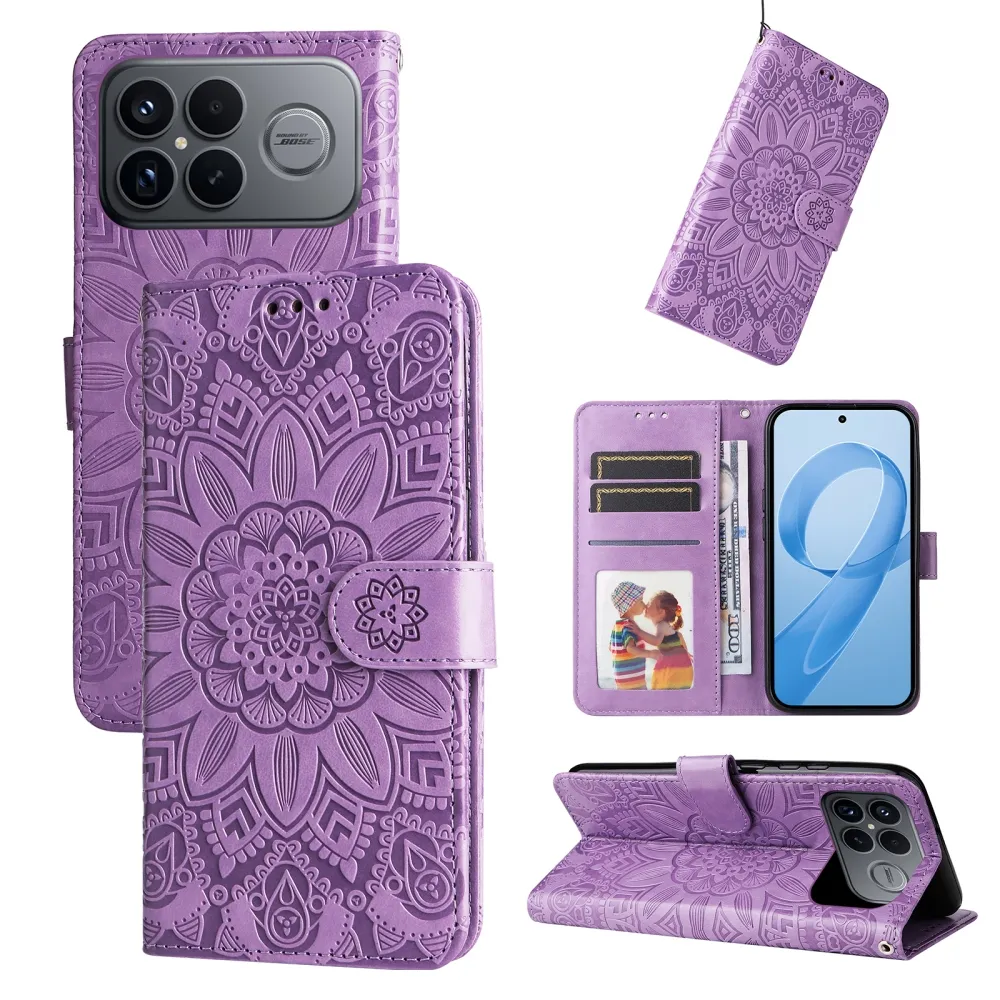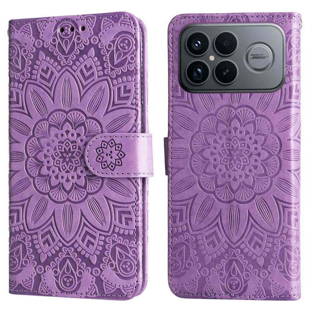 Fialové peněženkové pouzdro Sunflower na mobil Xiaomi Poco F8 Ultra 5G