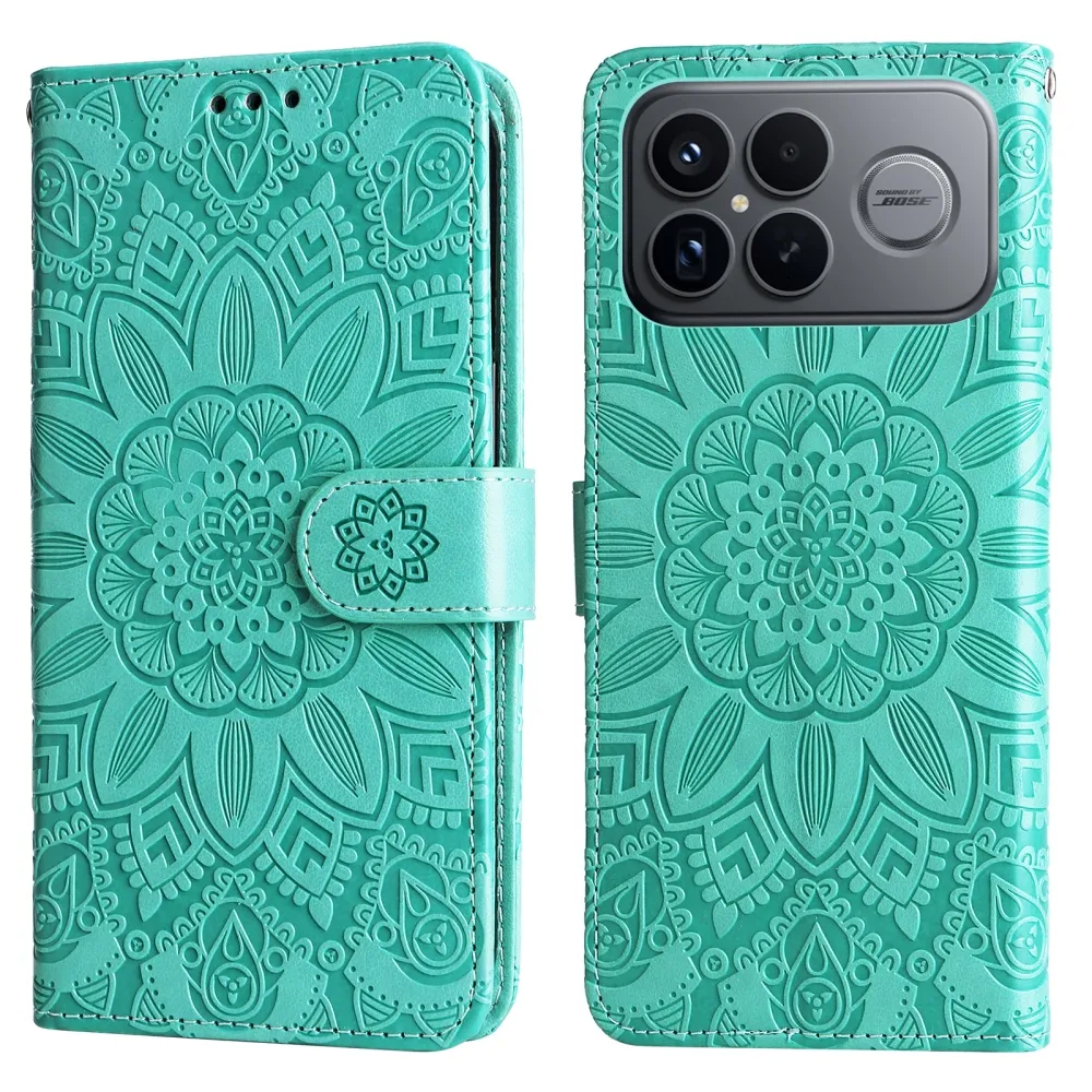 Modrozelené peněženkové pouzdro Sunflower na mobil Xiaomi Poco F8 Ultra 5G
