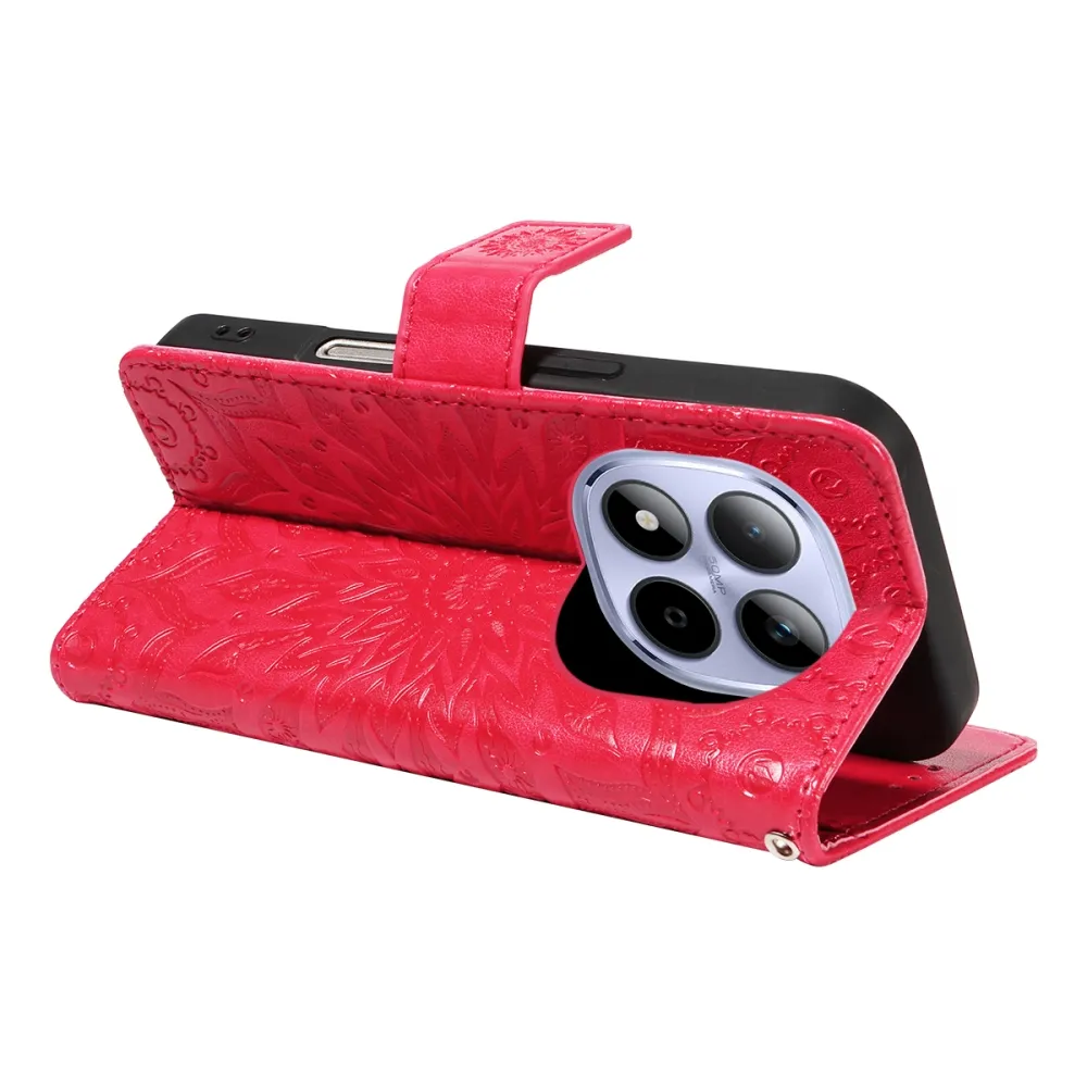 Sunflowers knížkové pouzdro na Xiaomi Redmi Note 15 Pro 5G - červené