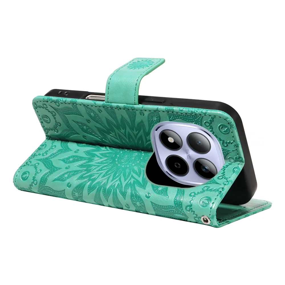 Sunflowers knížkové pouzdro na Xiaomi Redmi Note 15 Pro 5G - modrozelené