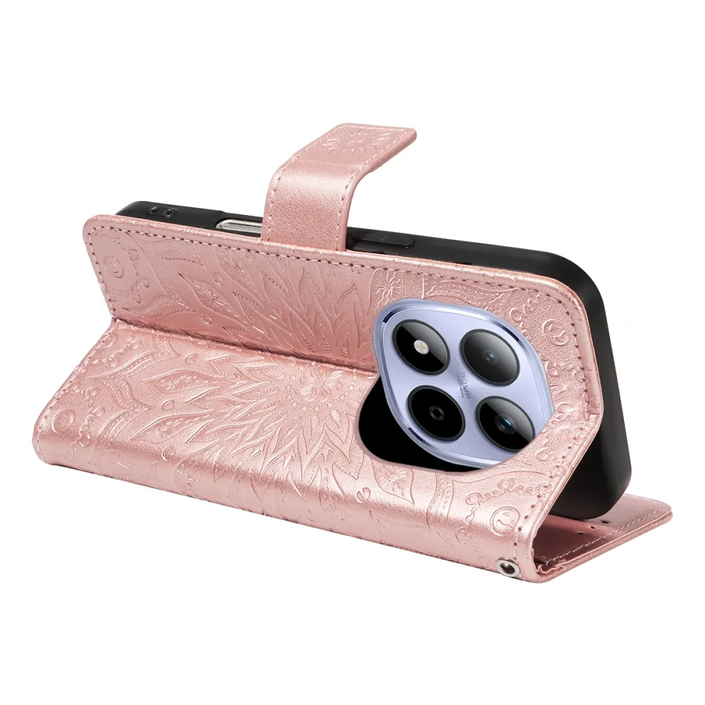 Sunflowers knížkové pouzdro na Xiaomi Redmi Note 15 Pro 5G - růžovozlaté