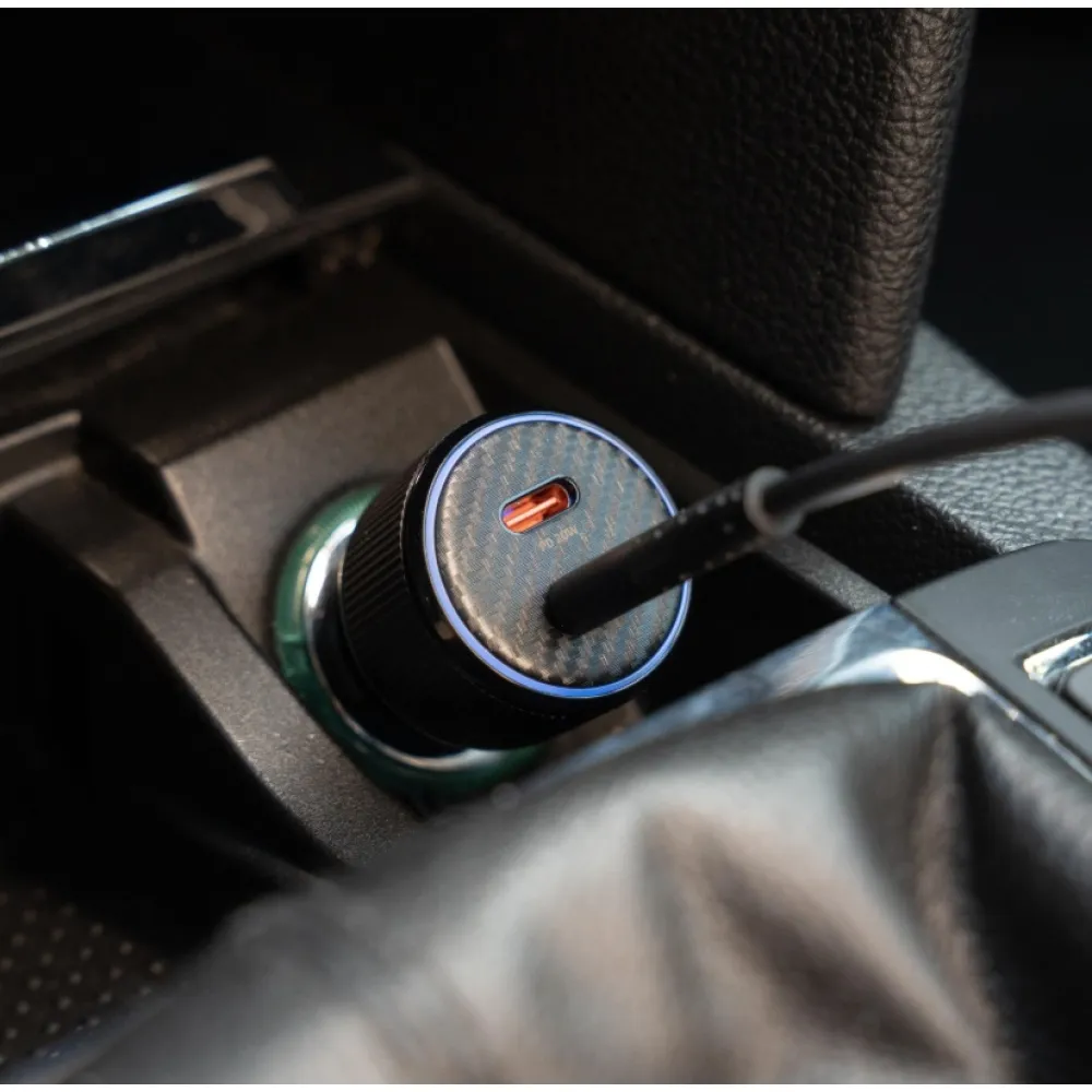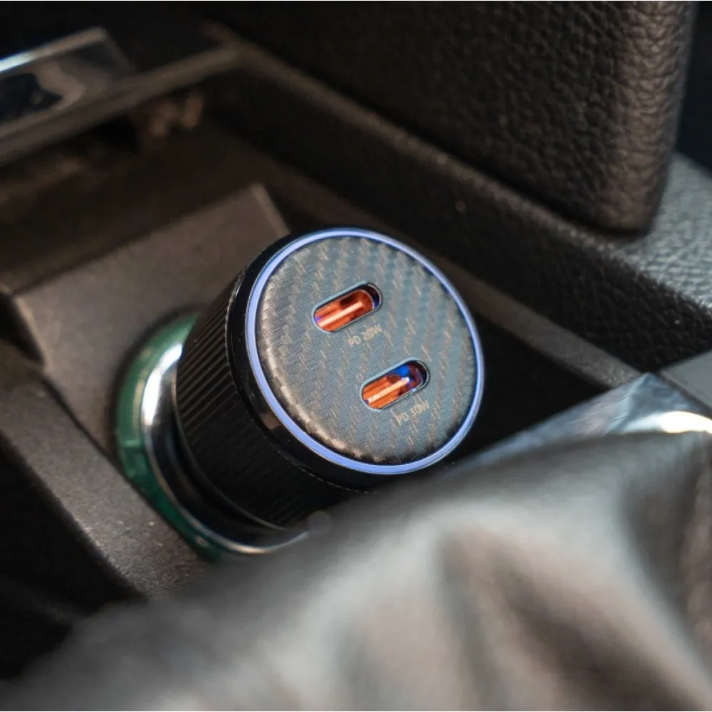 Kompaktní a výkonná autonabíječka s dvojicí USB-C portů a podporou PD 3.0. Umožňuje nabíjet dvě zařízení současně výkonem až 20W. Modré LED podsvícení usnadňuje připojení kabelu i při jízdě v noci.