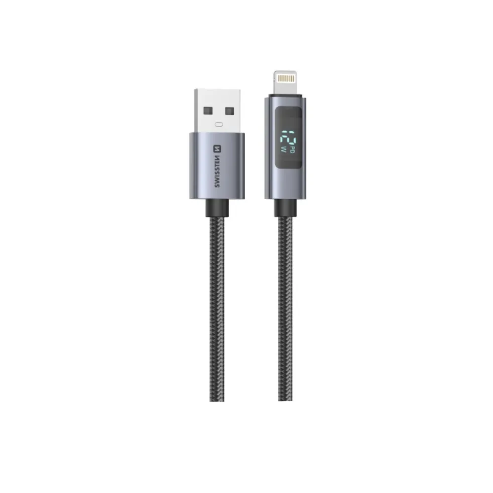 SWISSTEN LCD kabel USB-A / Lightning 1,5 m přináší revoluční způsob, jak mít neustálý přehled o průběhu nabíjení vašeho zařízení. Díky integrovanému LCD displeji okamžitě vidíte aktuální výkon ve wattech a indikaci technologie Power Delivery, což vám umožní efektivně kontrolovat rychlost nabíjení.