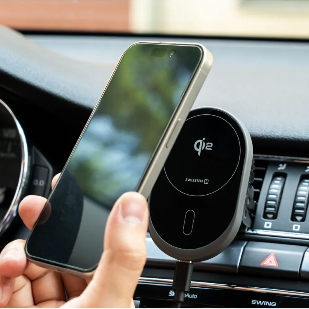 Swissten magnetický držák do ventilace Magride s bezdrátovým nabíjením QI2 15W (kompatibilní s magsafe)